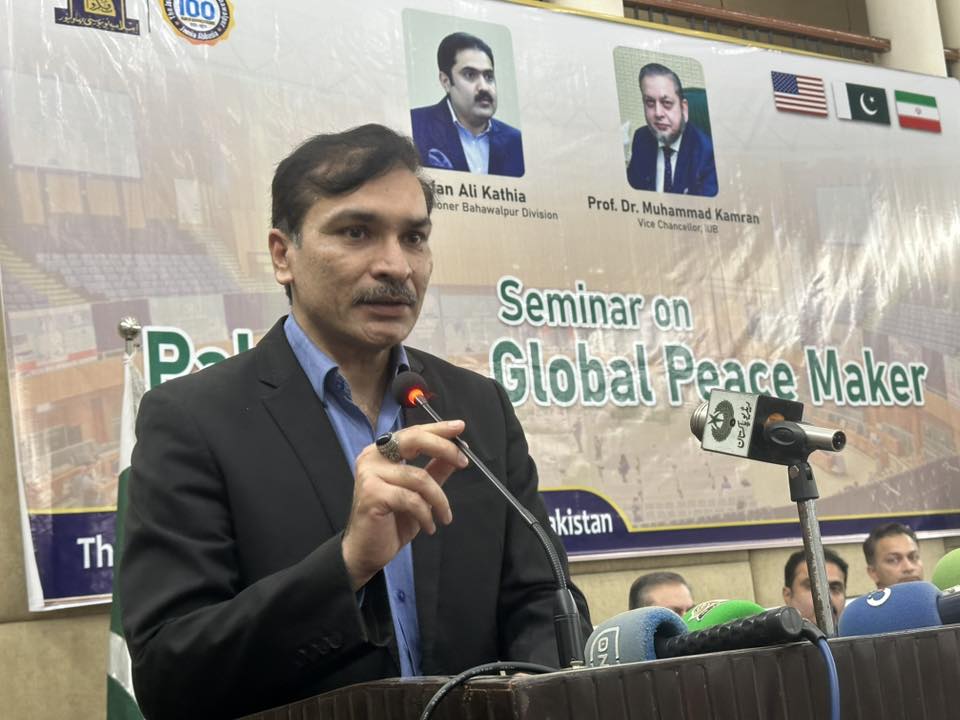 15 April 2026: A seminar titled Pakistan Global Peacemaker was held at Ghulam Muhammad Ghotvi Hall Abbasia Campus Islamia University of Bahawalpur. Commissioner Bahawalpur Division Irfan Ali Kathia was the chief guest while Vice Chancellor Prof. Dr. Muhammad Kamran presided over the seminar.