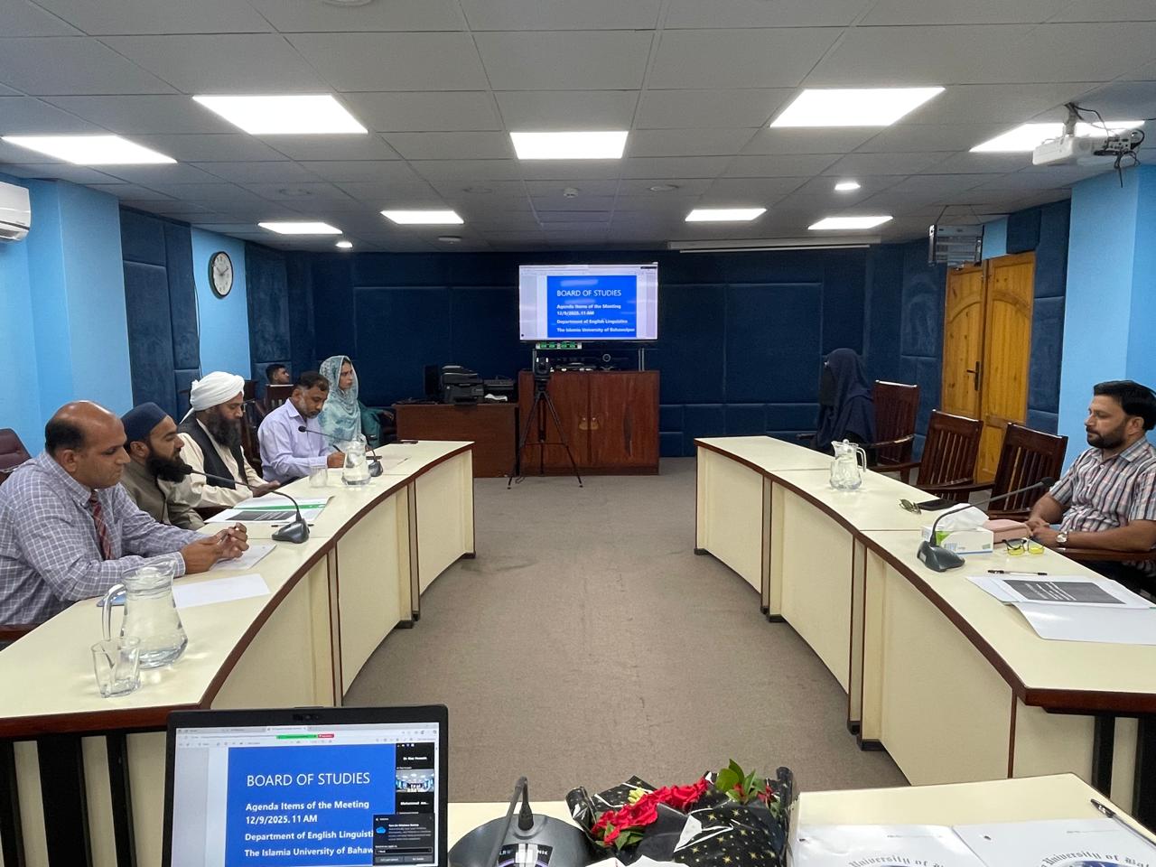 The Department of English Linguistics, The Islamia University of Bahawalpur (IUB), convened its Board of Studies meeting on September 12, 2025, at 10:30 a.m. in the Videocon Room, Baghdad-ul-Jadeed Campus.