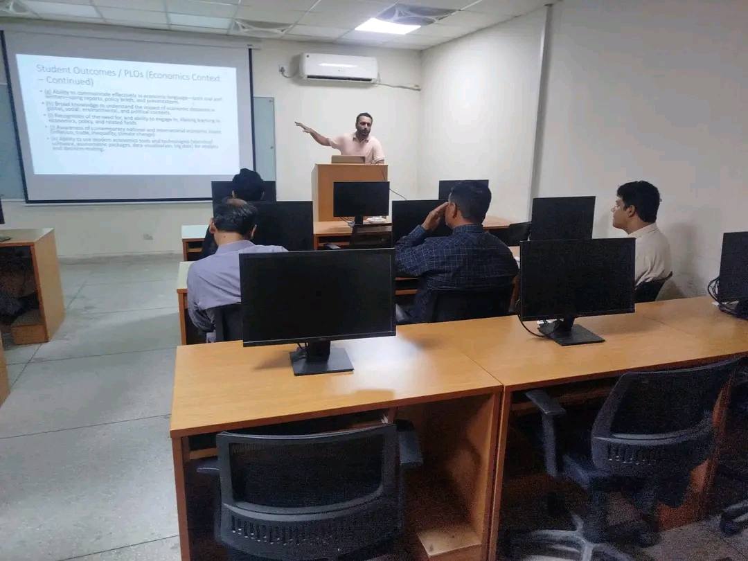 Following the vision of the Honorable Vice Chancellor, Professor Dr. Muhammad Kamran, and the guidance of Dean Faculty of Social Sciences, Professor Dr. Rubina Bhatti, the Department of Economics, The Islamia University of Bahawalpur, organized a department-level training session on Outcome-Based Education (OBE) on Wednesday, October 01, 2025.