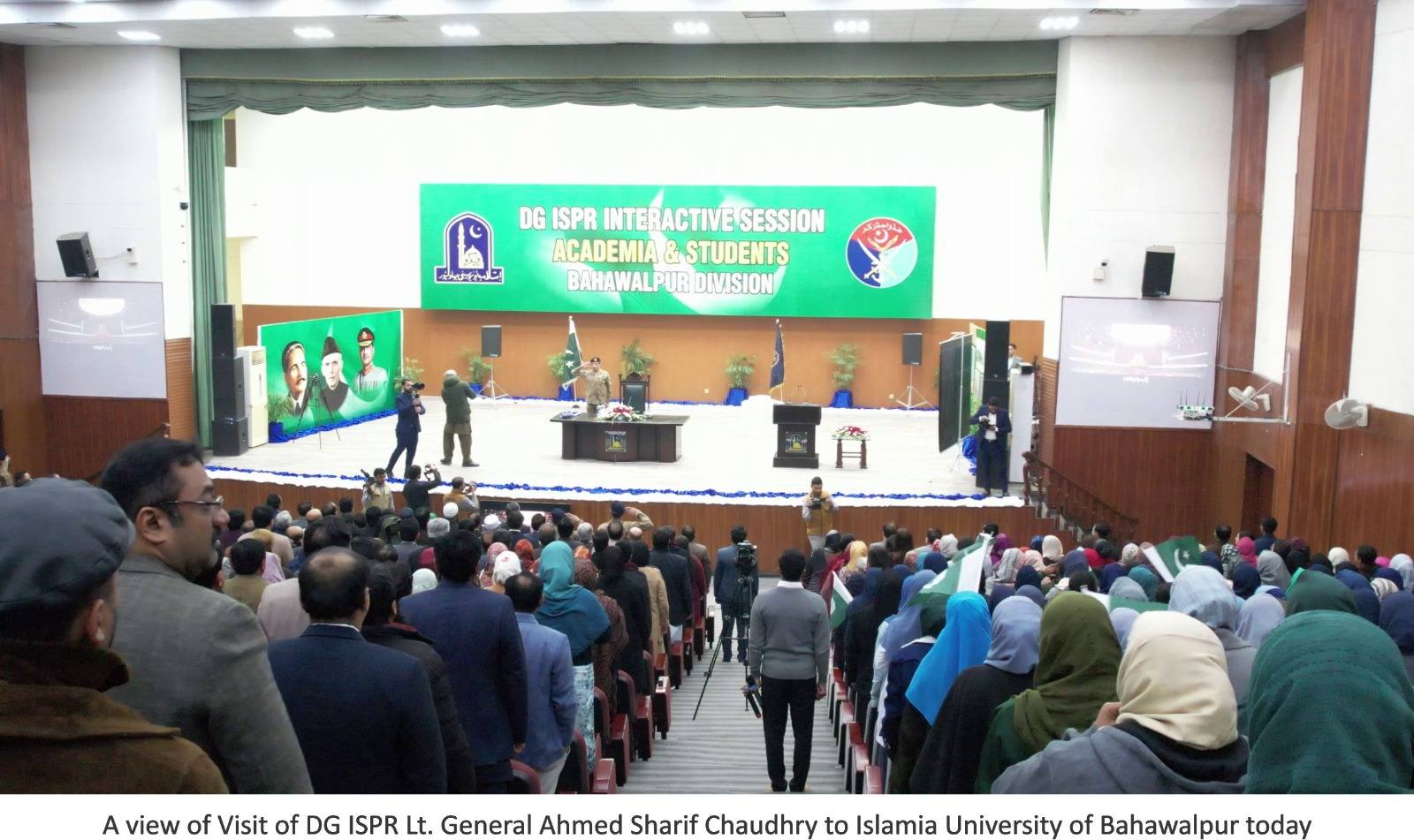 DG ISPR Lt. Gen. Ahmed Sharif Chaudhry addressed participants from educational institutions at IUB.