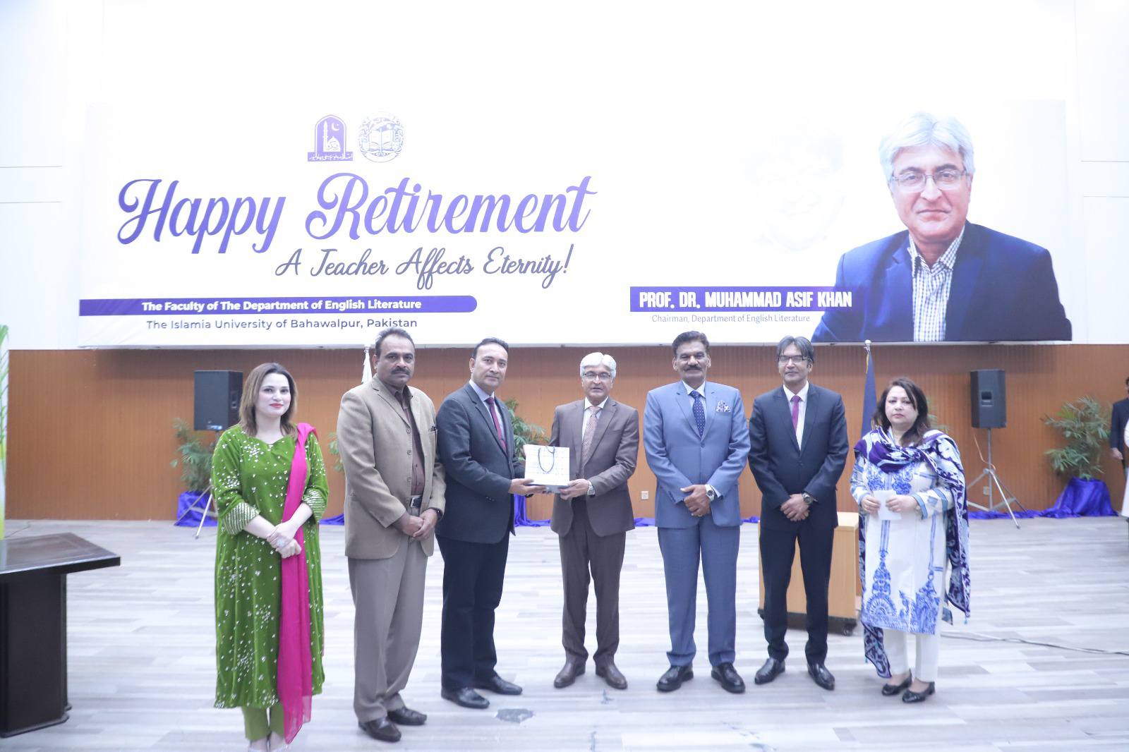 The Department of English Literature conducted a grand retirement ceremony in honour of Professor Dr Muhammad Asif Khan, Chairman of the Department of English Literature.
