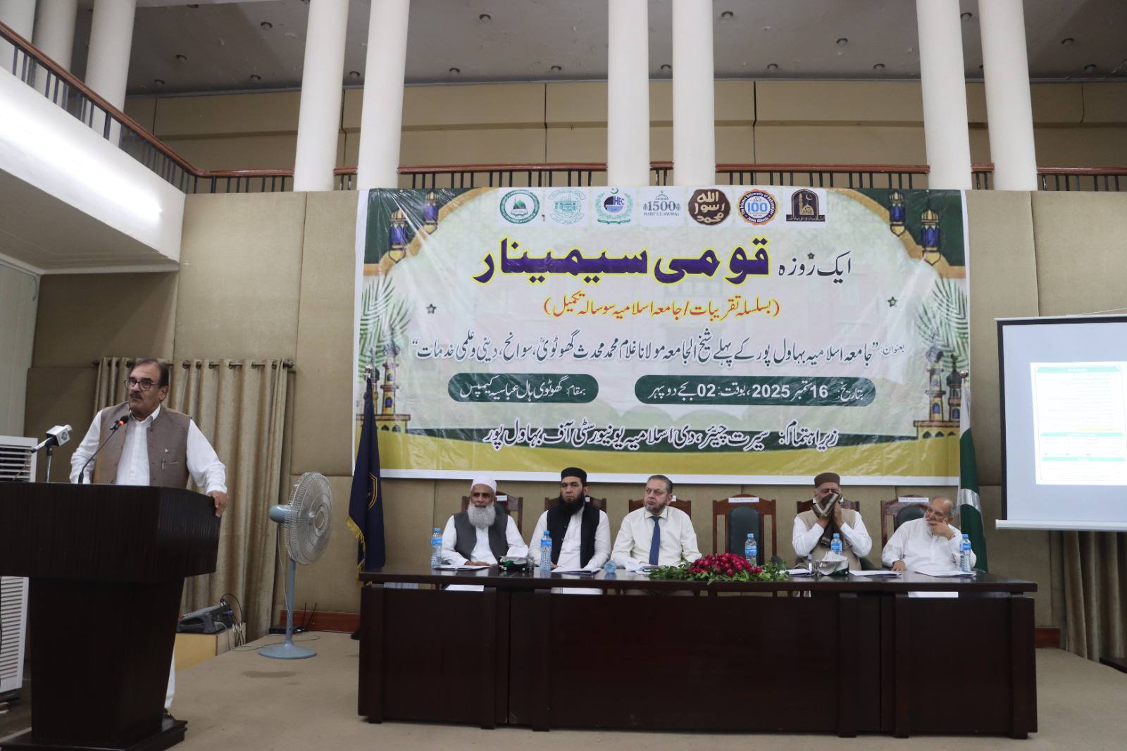 16 September 2025: In connection with the 100th anniversary celebrations of Islamia University of Bahawalpur, a special seminar was organised by the Seerat Chair to pay tribute to the first Sheikh-ul-Jamiah Hazrat Maulana Ghulam Muhammad Ghotvi at Ghulam Muhammad Ghotvi Hall, Abbasia Campus.