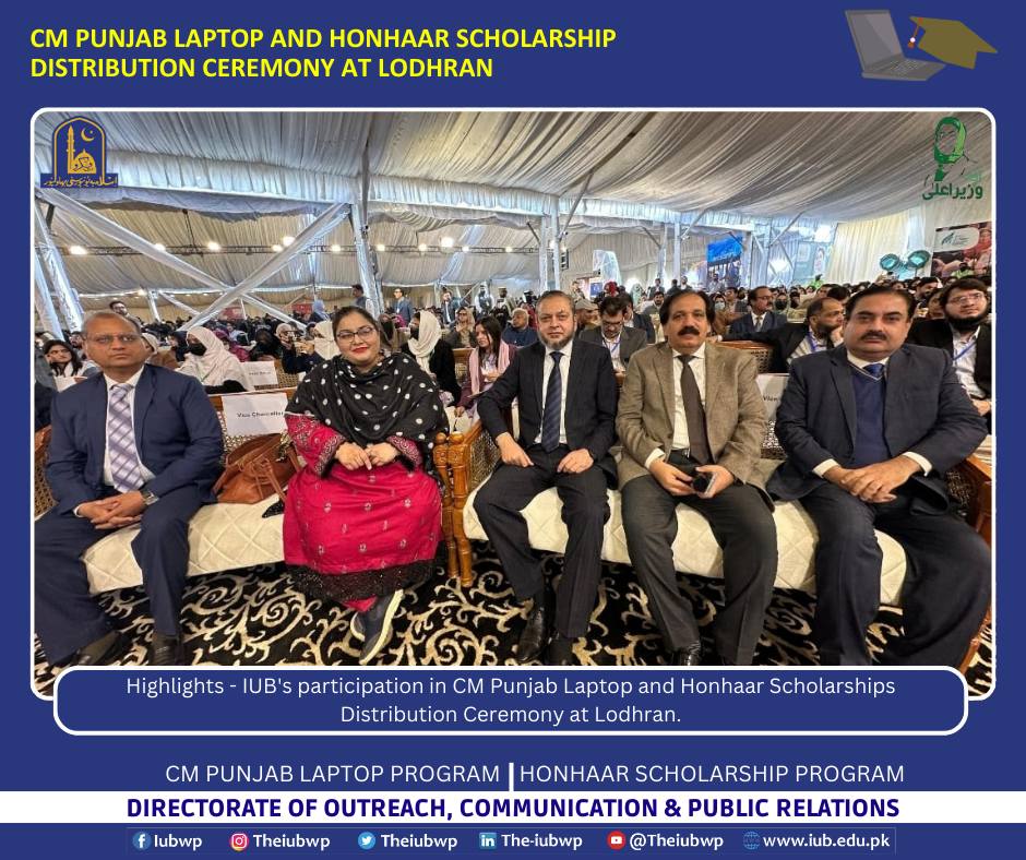 18 December 2025: Highlights - IUB's participation in CM Punjab Laptop and Honhaar Scholarships Distribution Ceremony at Lodhran.