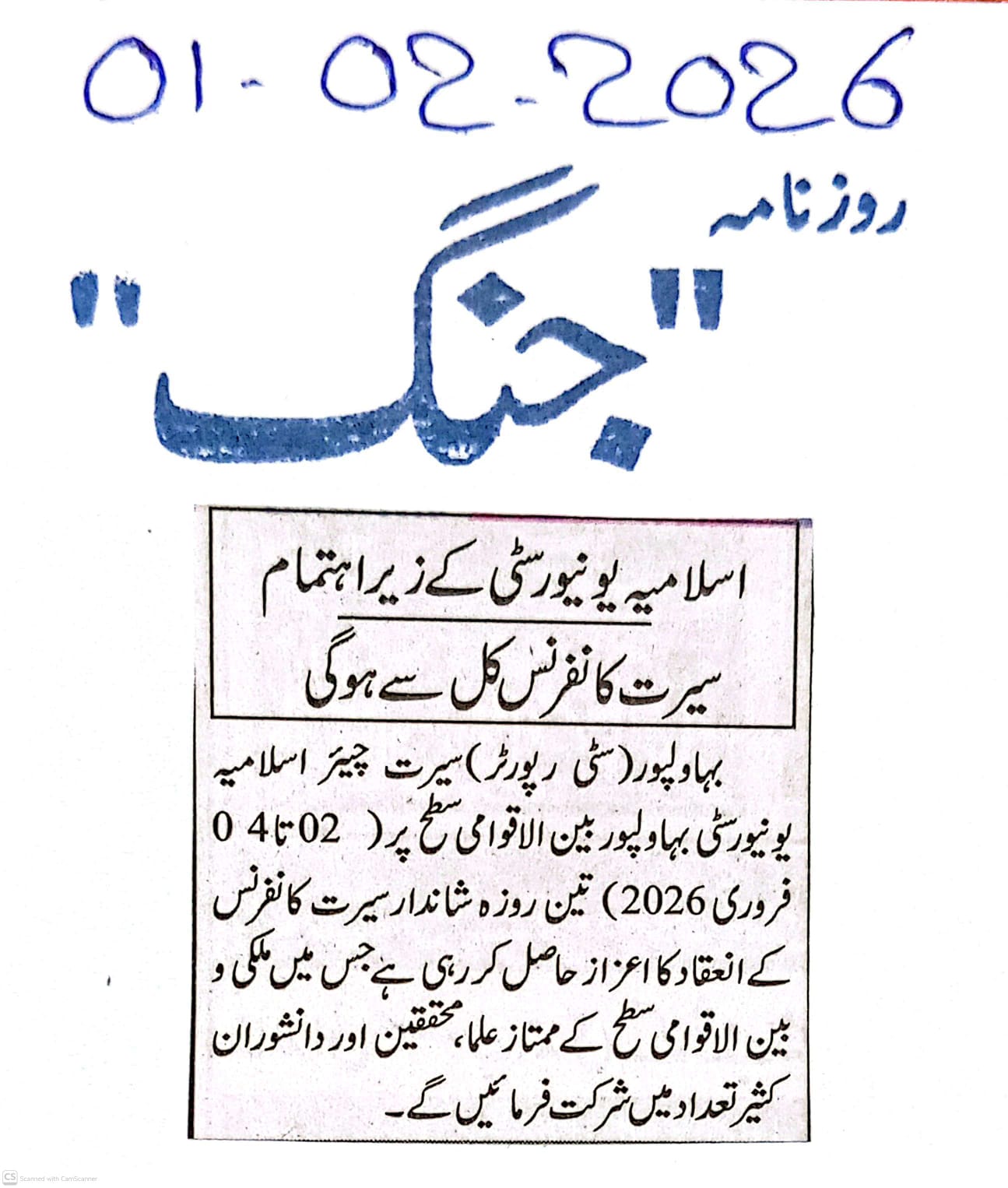 News Cuttings 01 February 2026