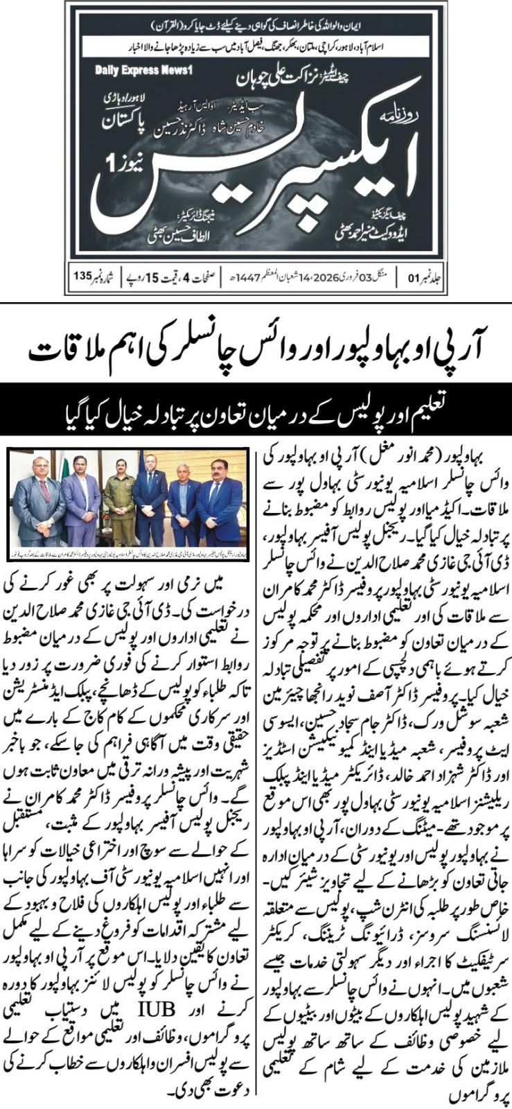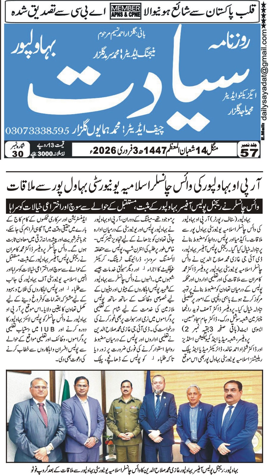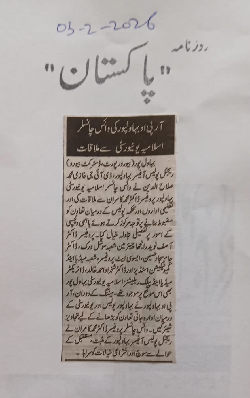 Corps Commander Bahawalpur visits the Islamia University of Bahawalpur | National Seminar on Food Security | IUB and Sichuan Agriculture University’s Project included in the CPEC | IUB announces Scholarahips for the Children of Martyrs of Bahawalpur Police