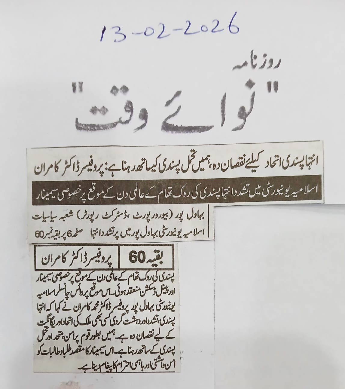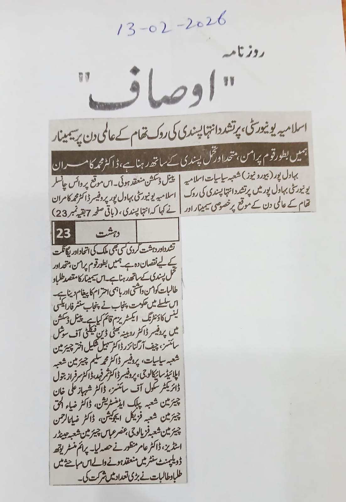 News Cuttings 13 February 2026