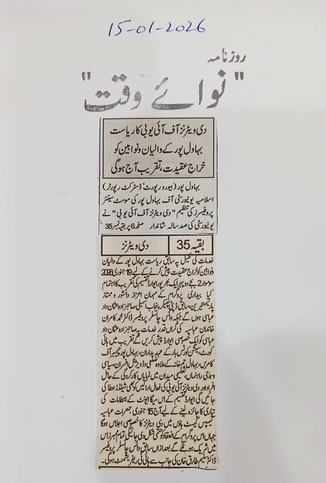 News Cuttings 15 January 2026