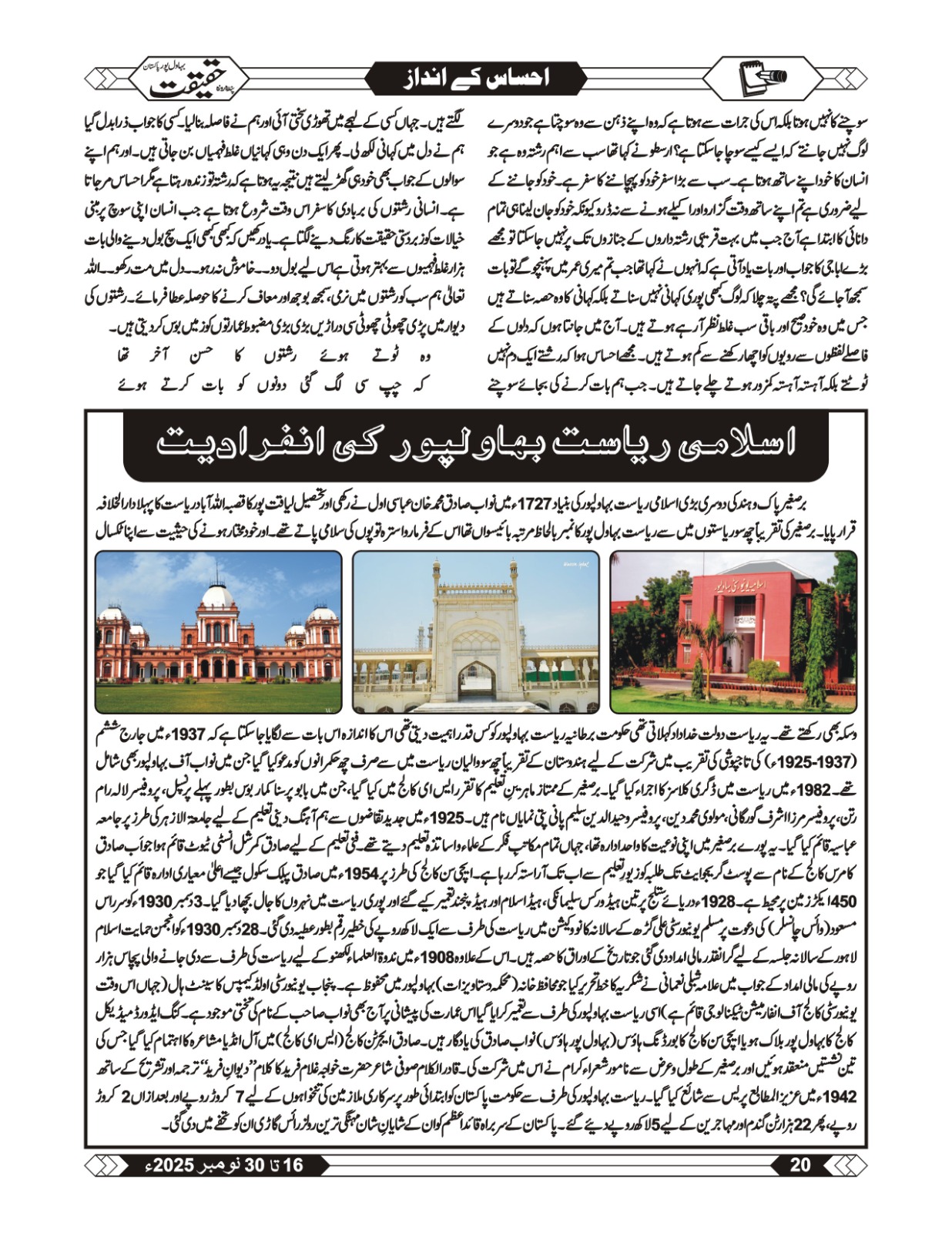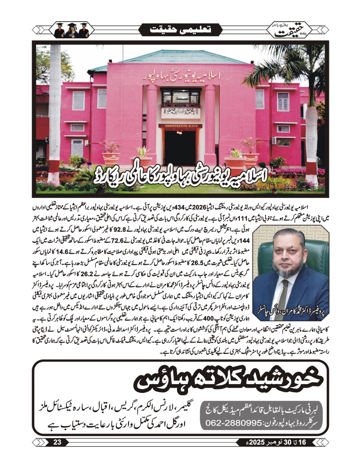 Bahawalpur has always been a seat of higher learning. Uch Sharif (a nearby ancient town) had one of the largest universities in the world where scholars from all over the world used to come for studies.