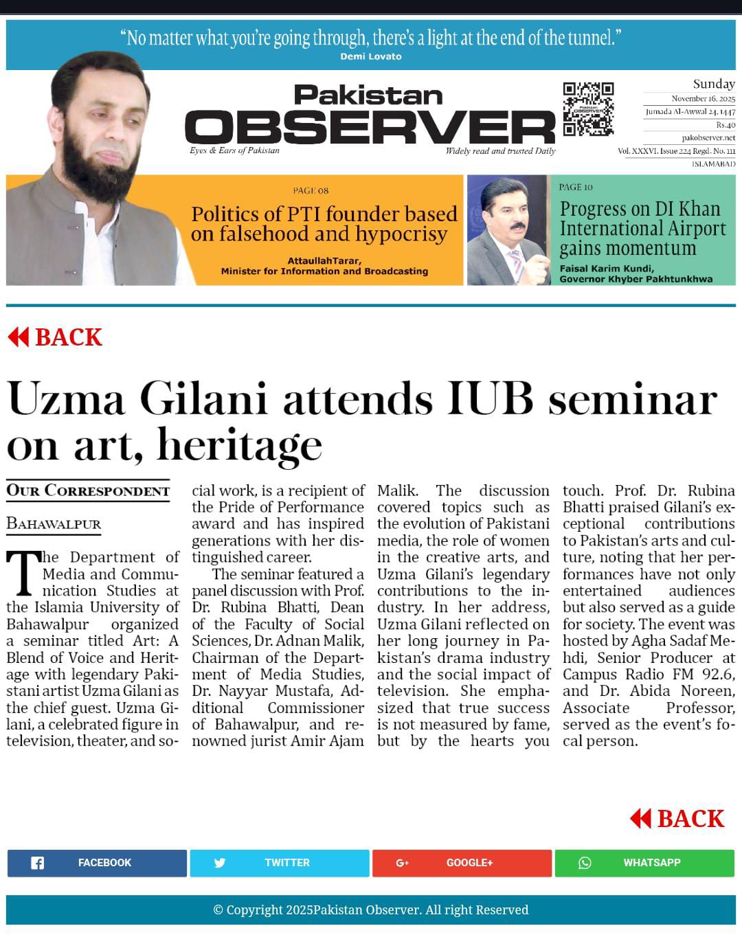 Corps Commander Bahawalpur visits the Islamia University of Bahawalpur | National Seminar on Food Security | IUB and Sichuan Agriculture University’s Project included in the CPEC | IUB announces Scholarahips for the Children of Martyrs of Bahawalpur Police