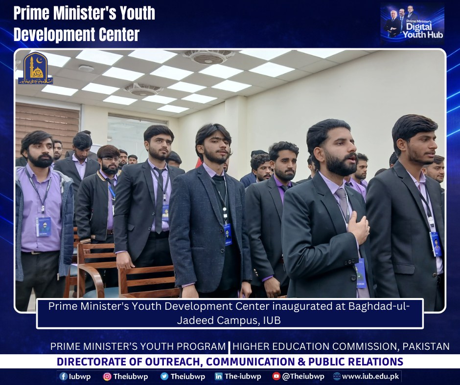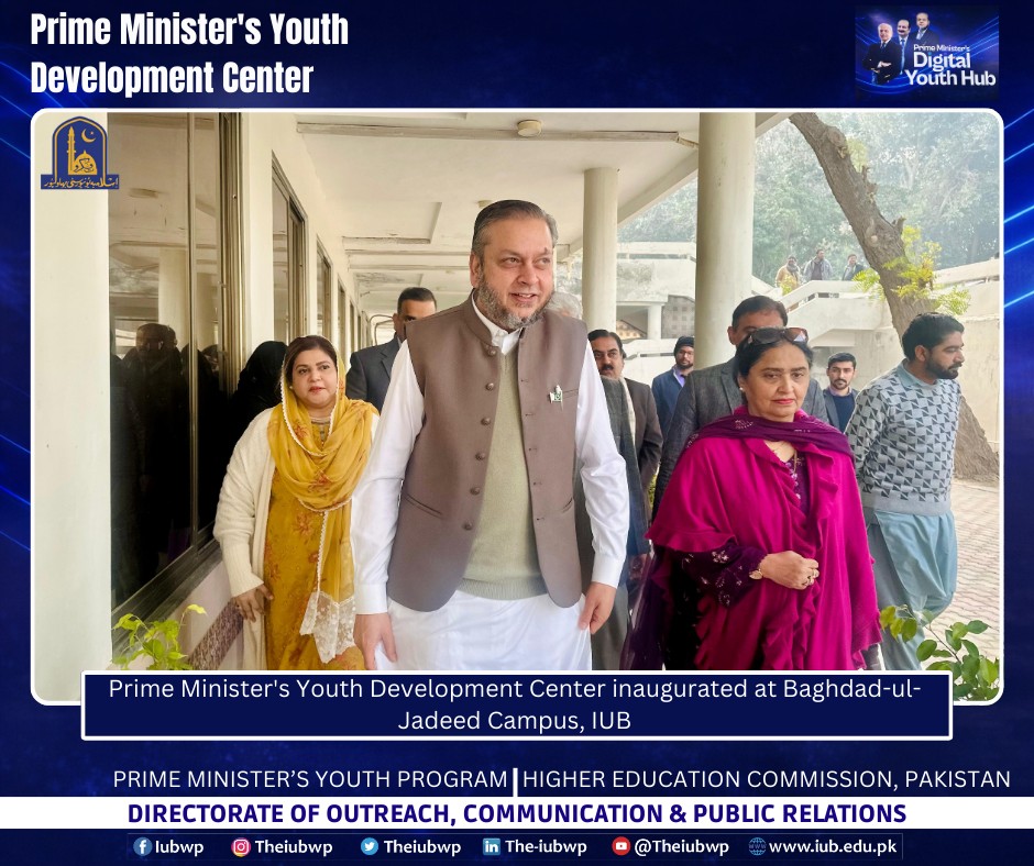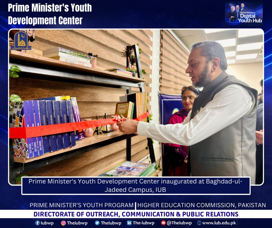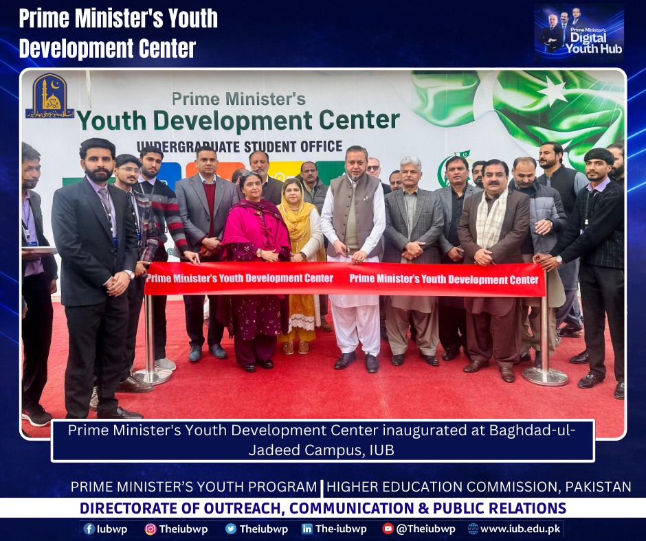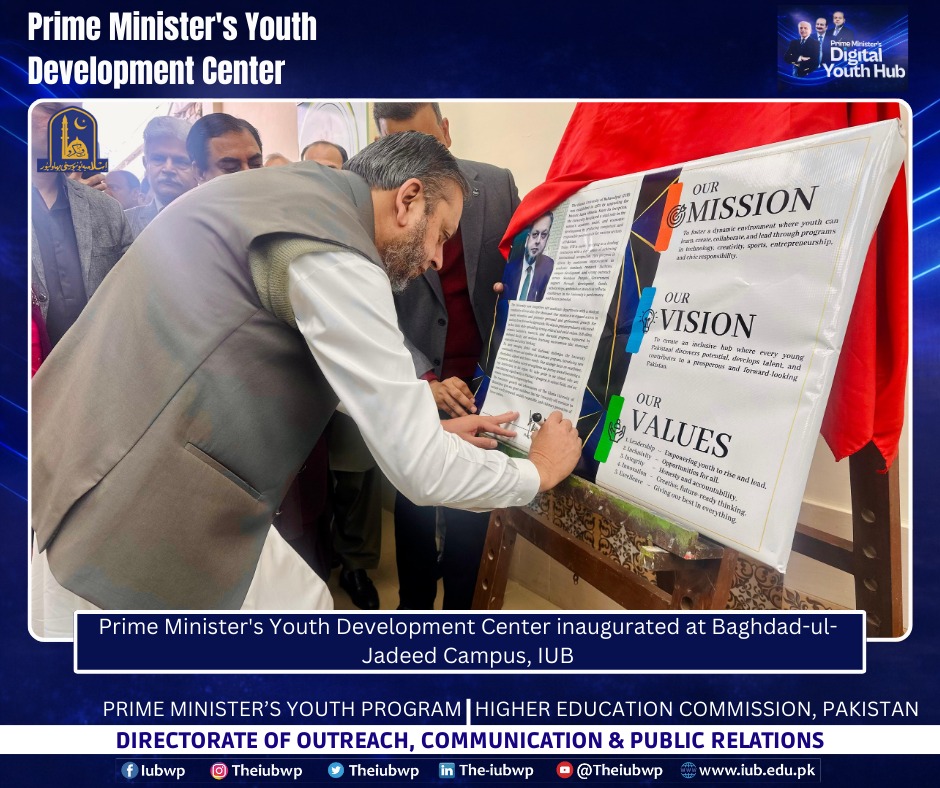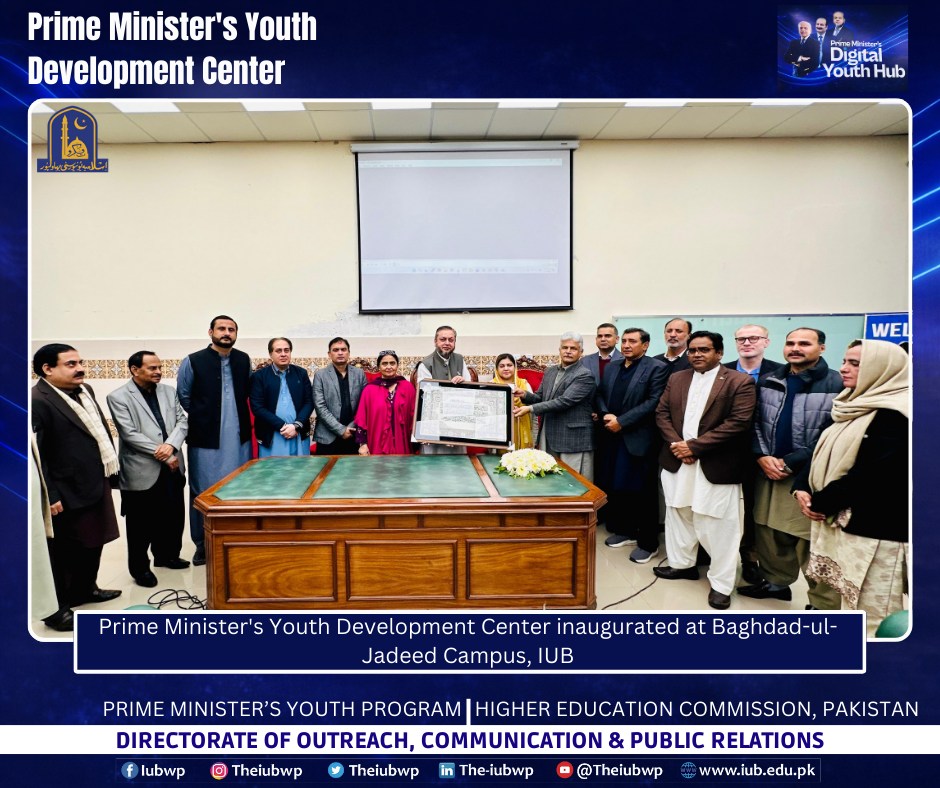 02 January 2026: Vice Chancellor Prof. Dr. Muhammad Kamran officially inaugurated the Prime Minister’s Youth Development Centre (PMYDC) today at the Baghdad-ul-Jadeed Campus.