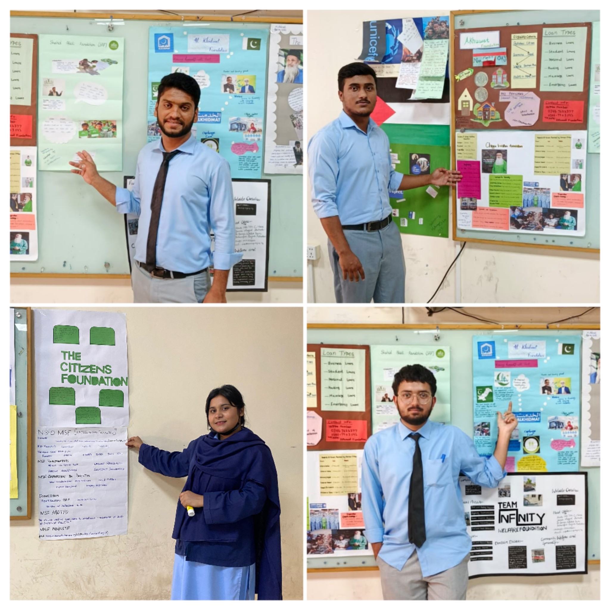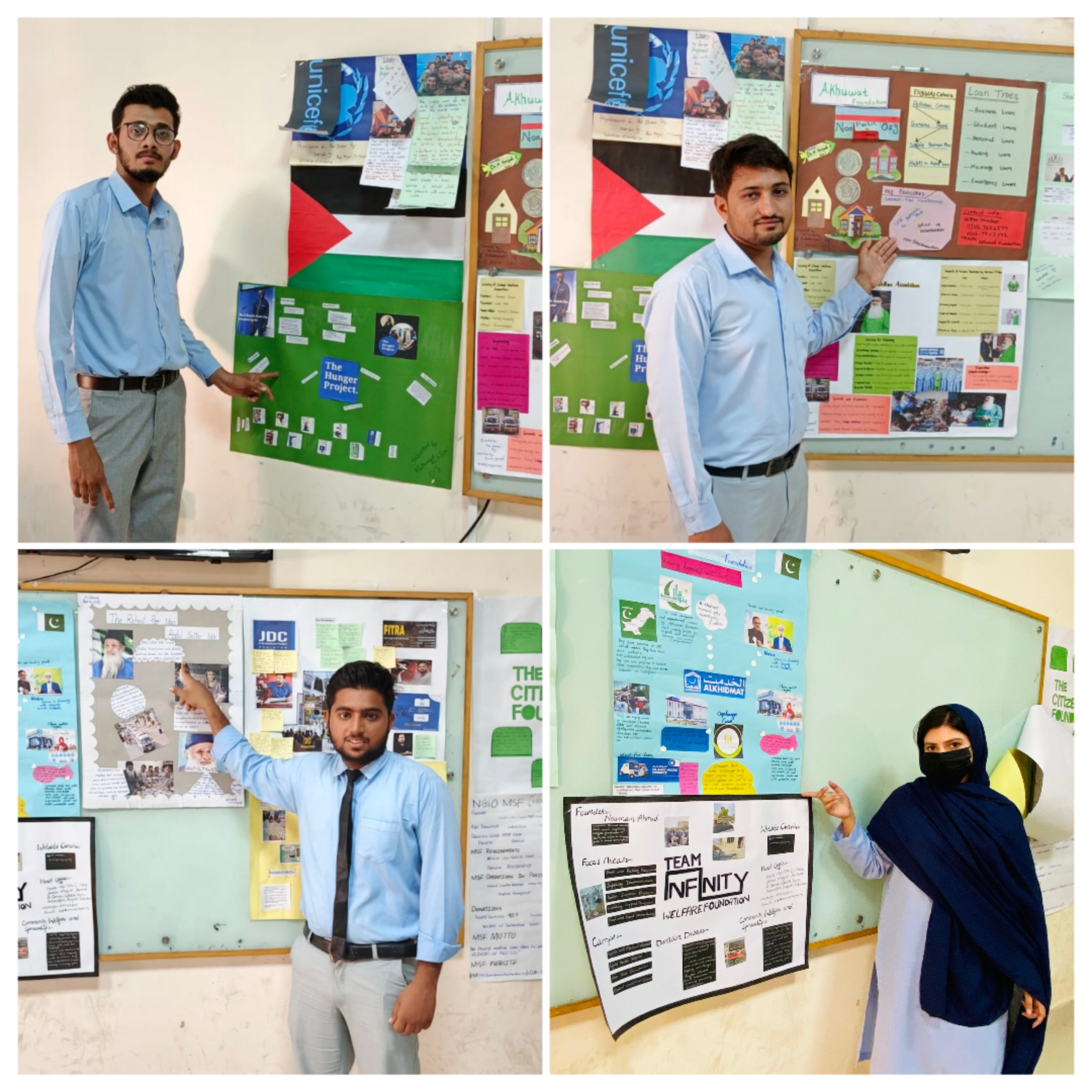 Students of the BS Entrepreneurship 4th semester presented creative posters highlighting local, national, and international social enterprises and NGOs, focusing on their working models, business approaches, and relevant Sustainable Development Goals (SDGs). The session was observed by Ms. Shazia, Founder of Pakistan Entrepreneur Empowerment Forum (PEEF).