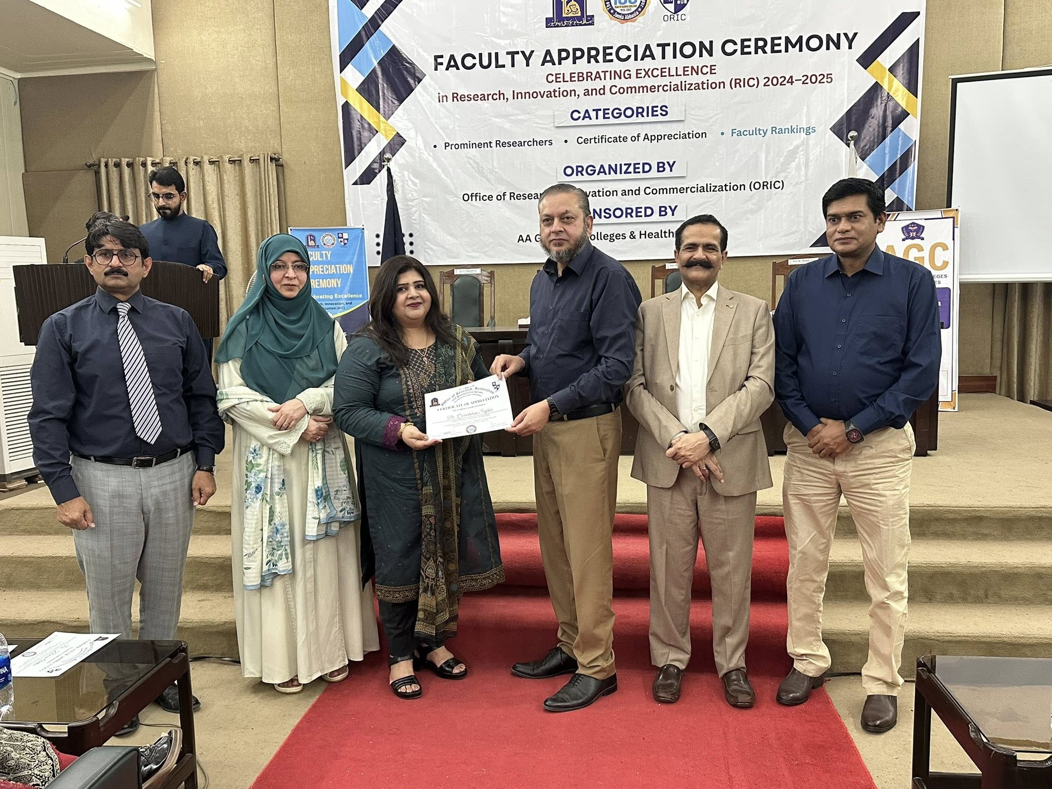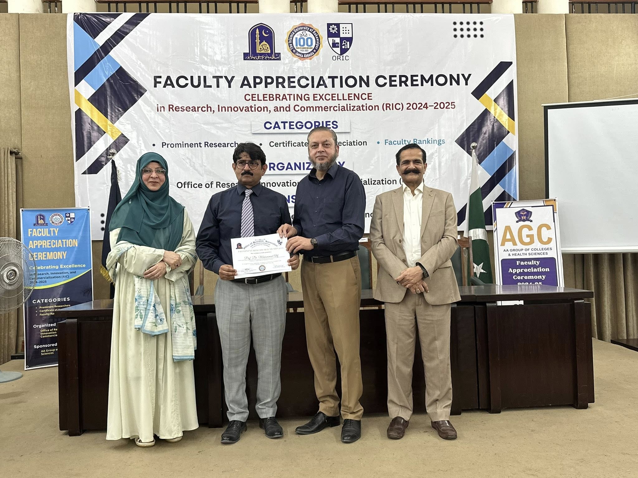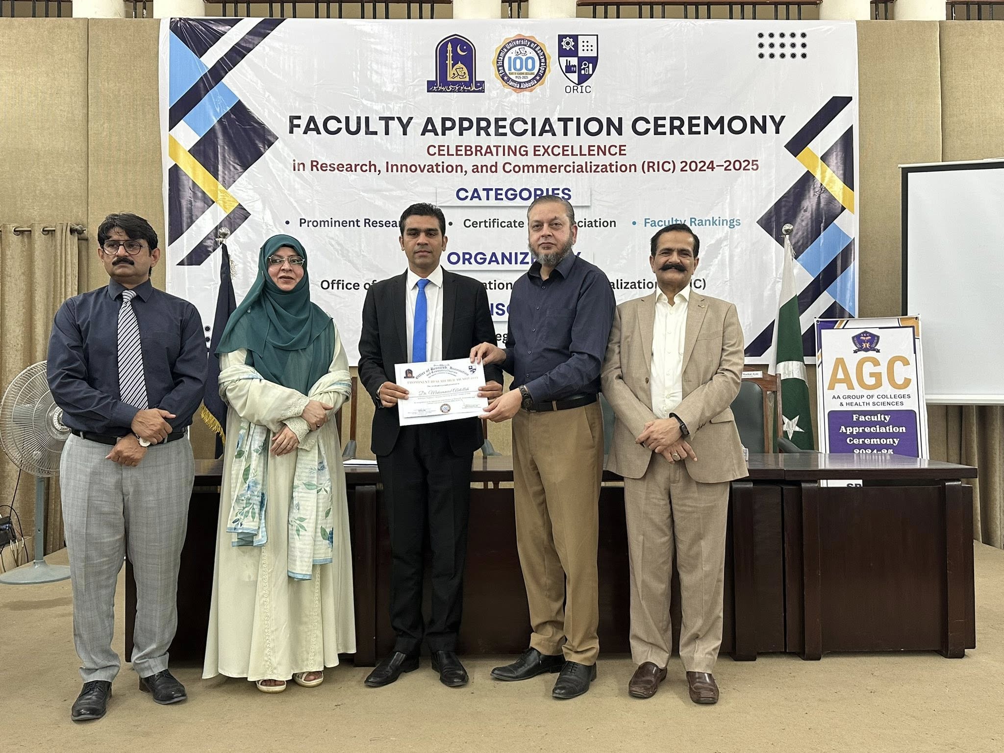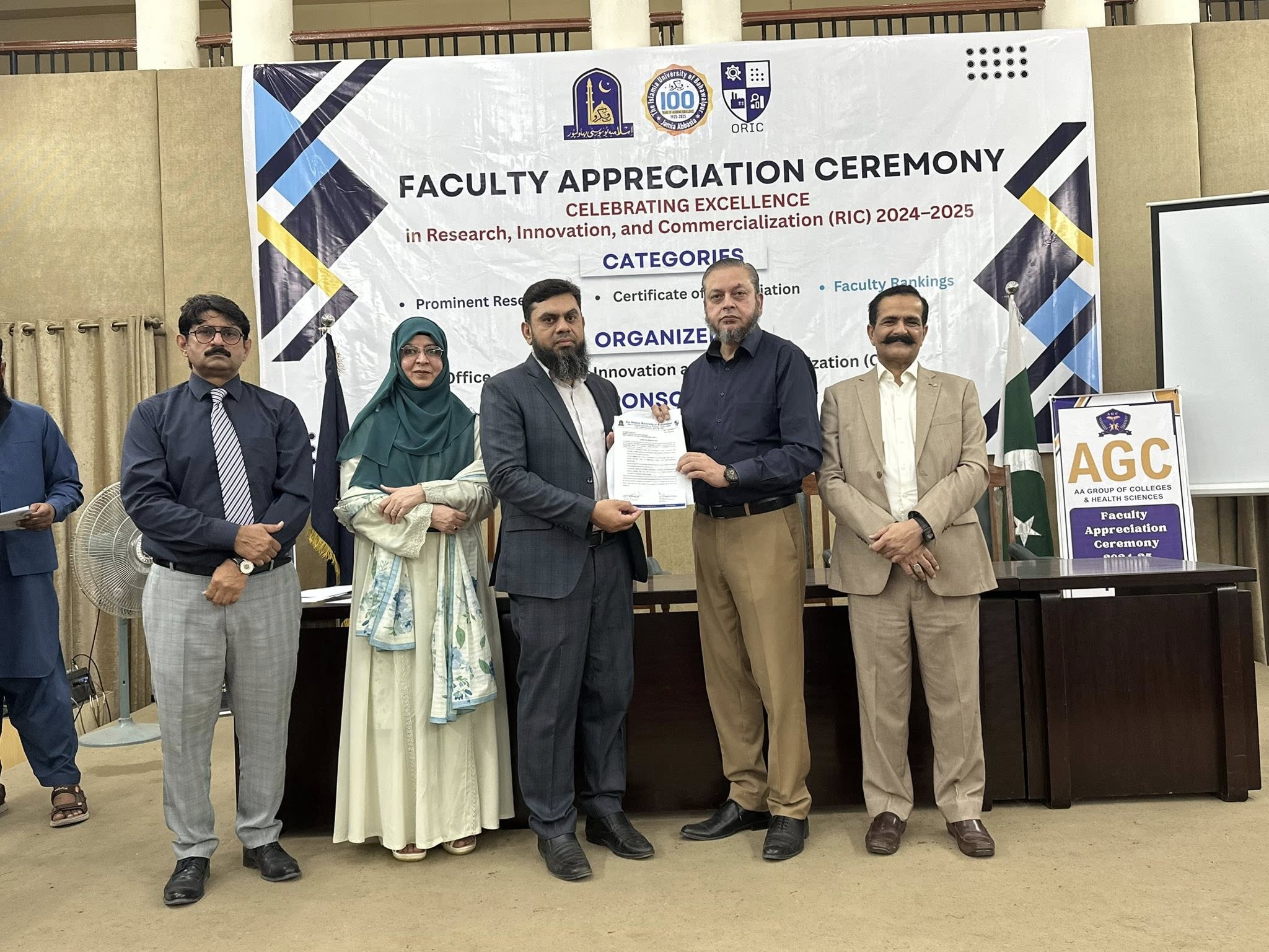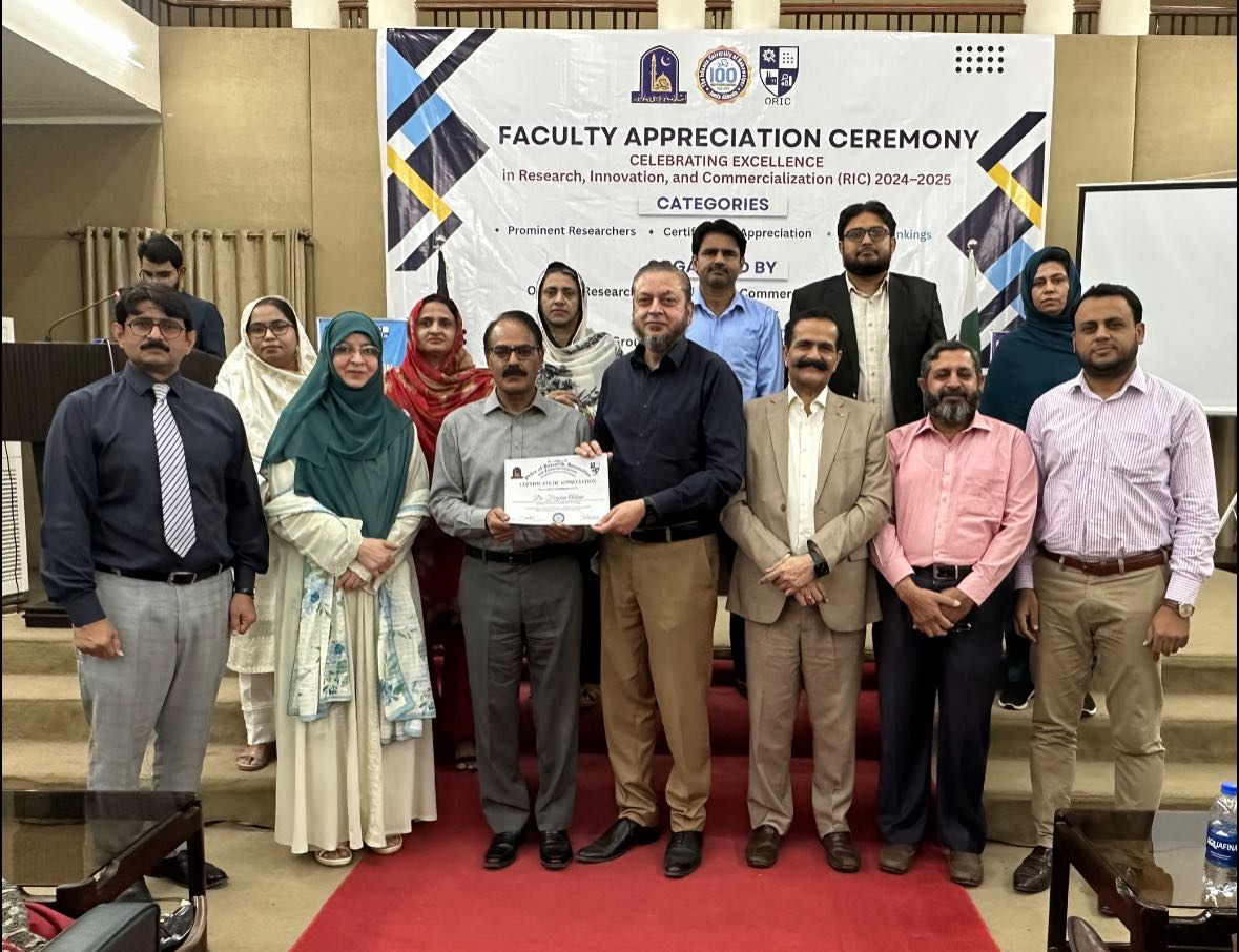 09 Oct 2025: The Office of Research, Innovation and Commercialization (ORIC), The Islamia University of Bahawalpur, organized its First Faculty Appreciation Ceremony 2025 to honor the distinguished faculty members who have demonstrated exceptional performance in the domains of Research, Innovation, and Commercialization in line with the HEC-defined ORIC KPIs for the fiscal year 2024–25.