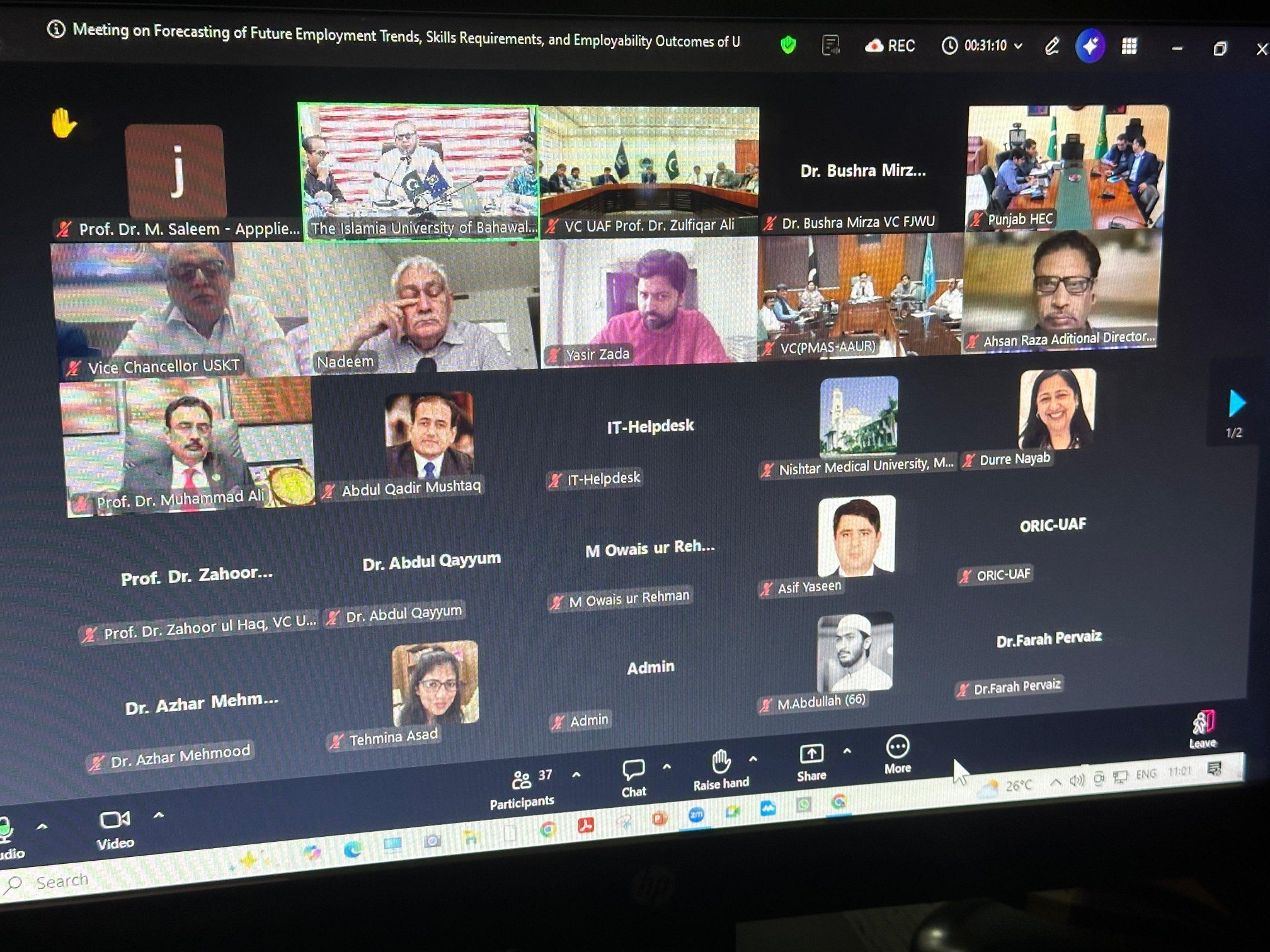 Vice Chancellor Prof. Dr. Muhammad Kamran and other officials attended the online PHEC meeting.