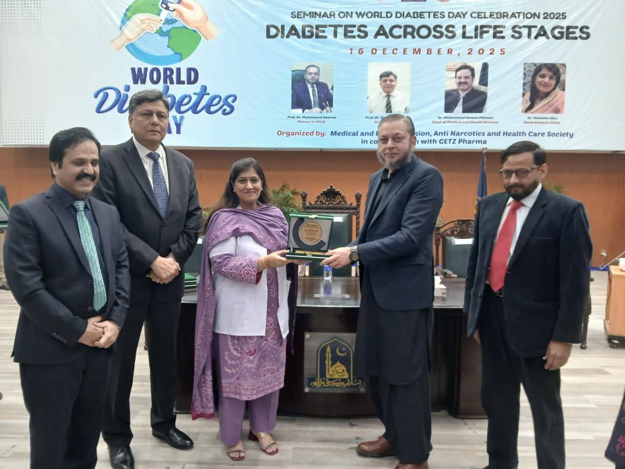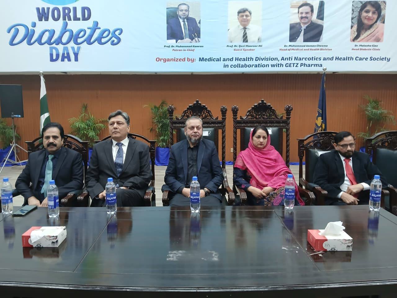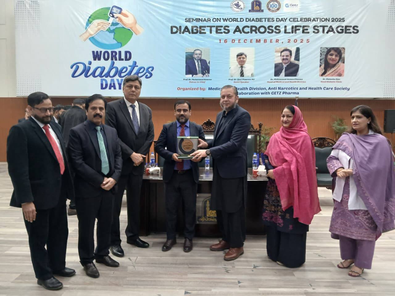 16 December 2025: World diabetes day was celebrated today in Khawaja fareed auditorium by Medical and Health Division,IUB in collaboration with IUB anti narcotics and health care society and Getz pharma .Professor Dr Qazi masroor ali was the guest speaker.