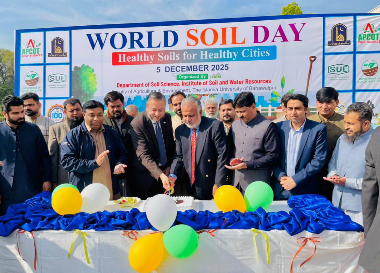05 Dec 2025 – The Department of Soil Science, Institute of Soil and Water Resources, Faculty of Agriculture and Environment, The Islamia University of Bahawalpur (IUB), organized a seminar to mark World Soil Day 2025 under the theme “Healthy Soil, Healthy City.” The event highlighted the vital role of soils in food security, climate resilience, and sustainable urban development.