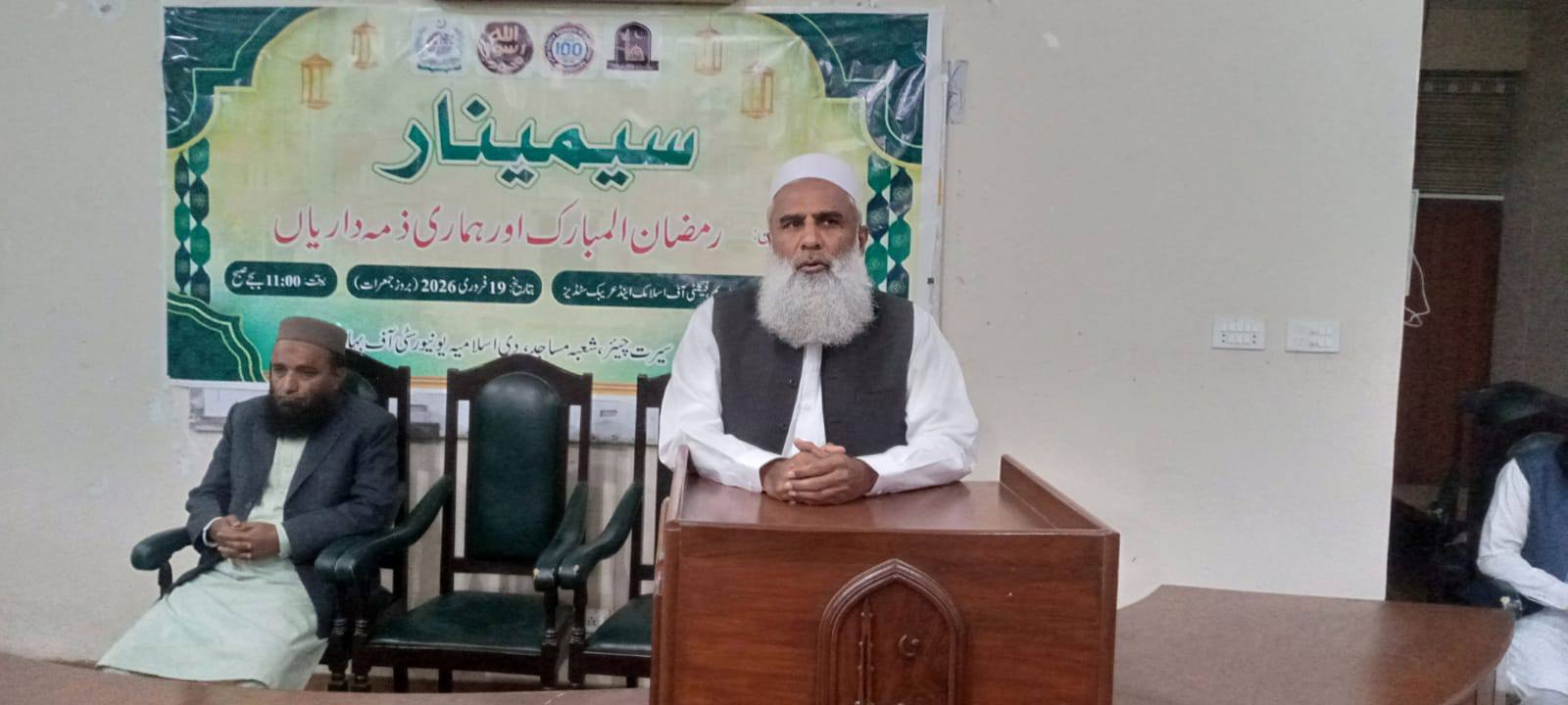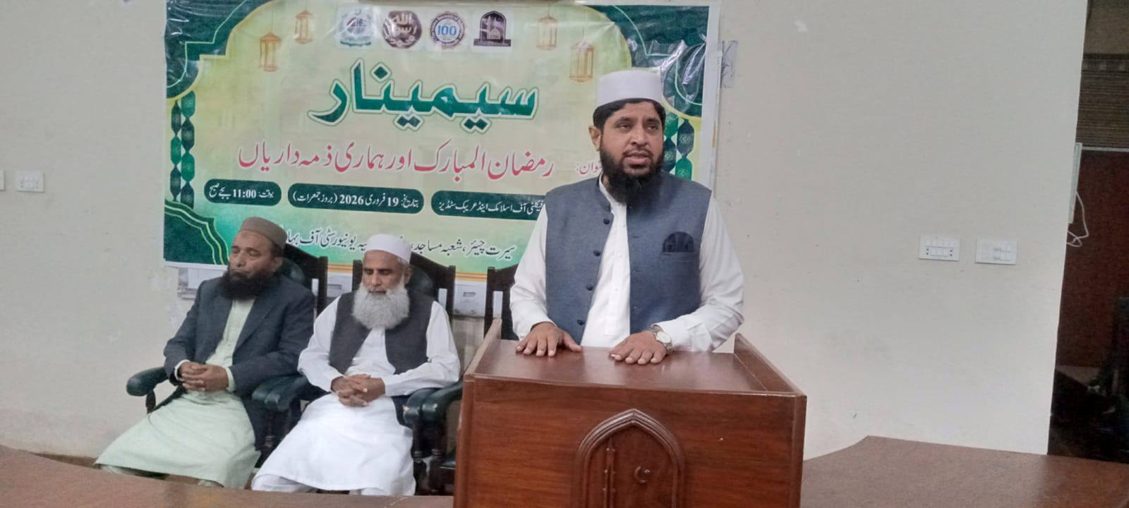 On February 19, 2026, the Seerat Chair and the Directorate of Mosques hosted a seminar titled "Ramadan and Our Responsibilities" at the Syed Salman Nadvi Auditorium, Faculty of Islamic and Arabic Studies.
