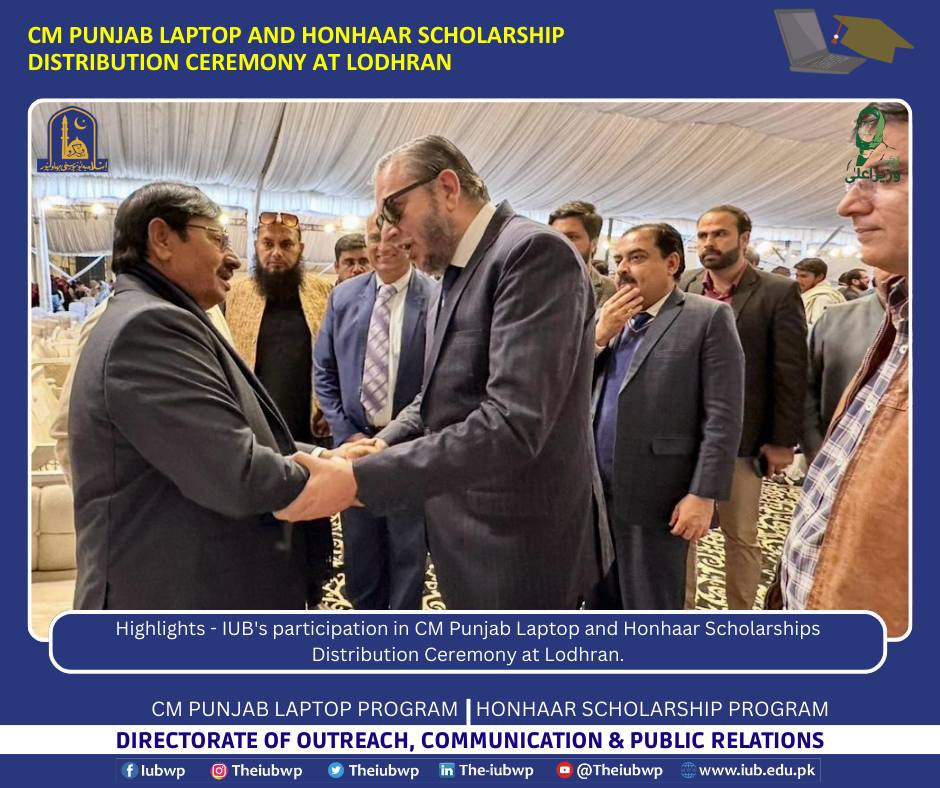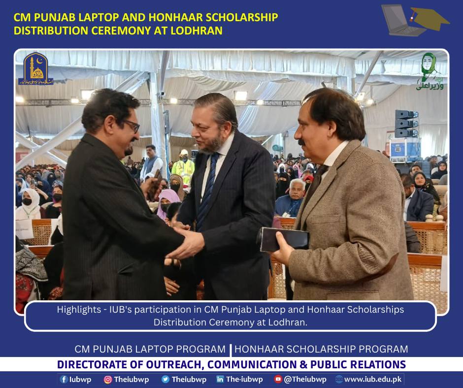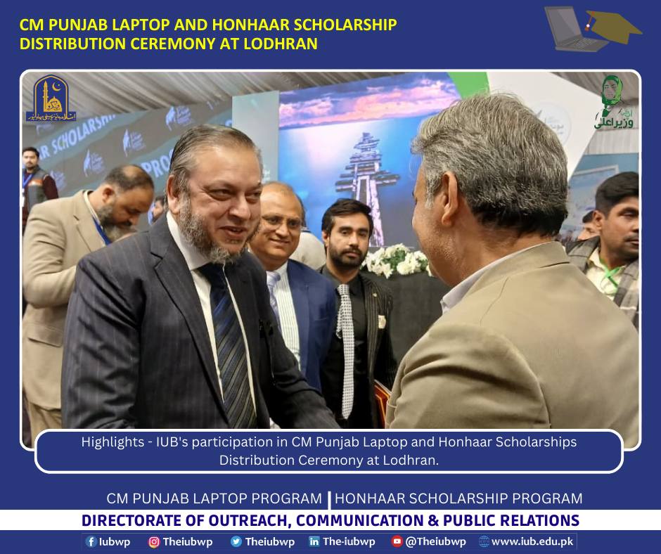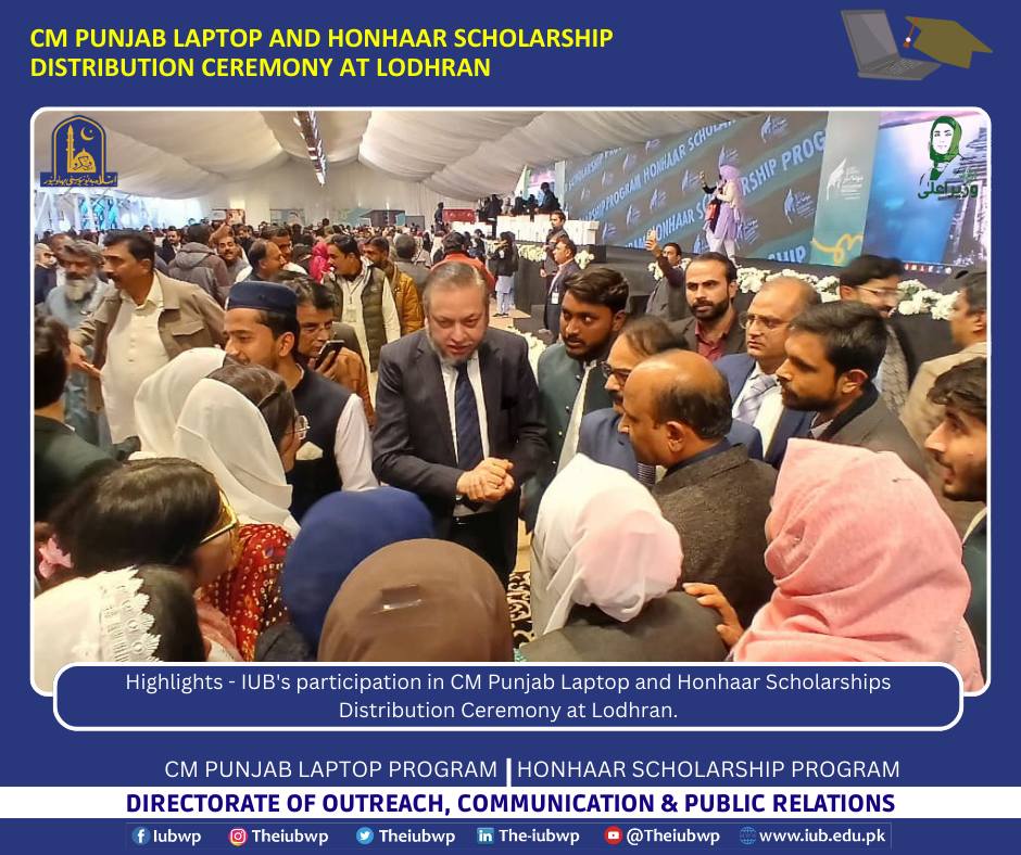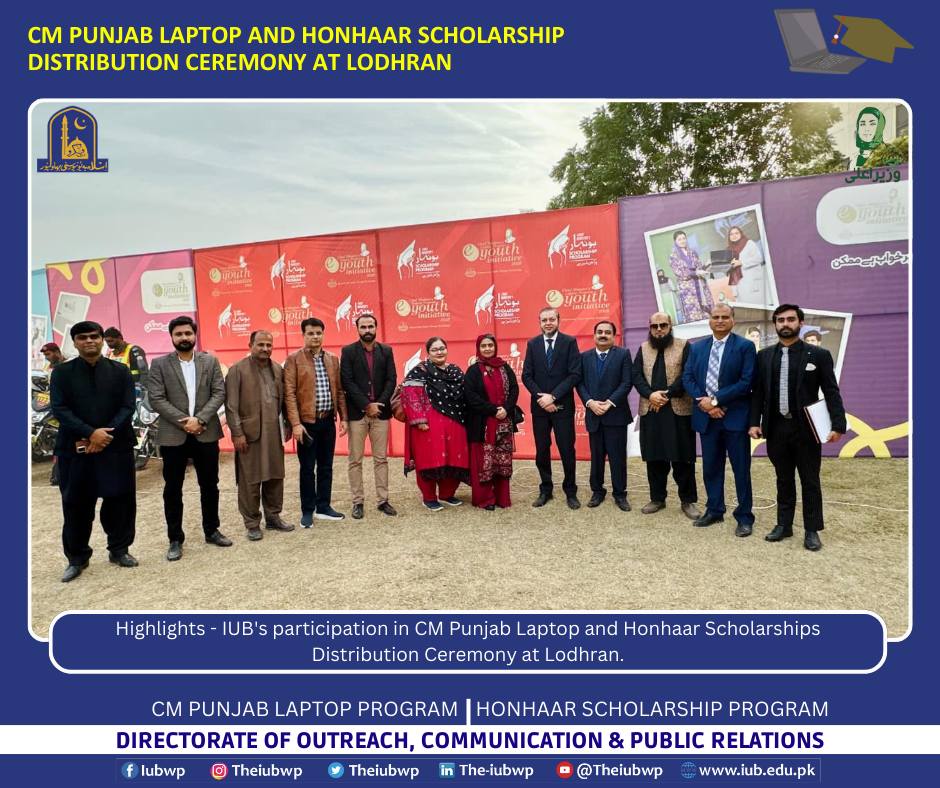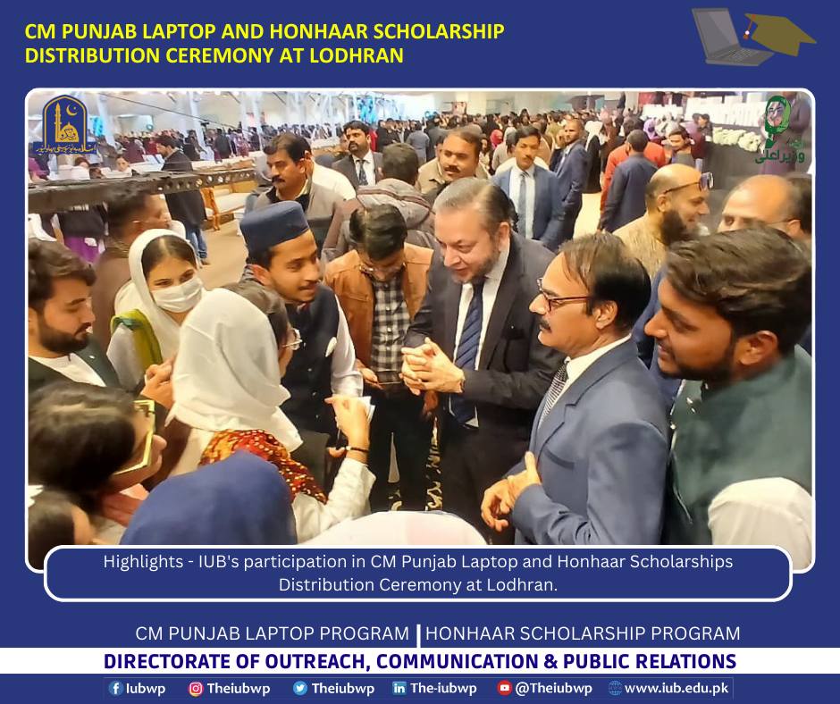 18 December 2025: Highlights - IUB's participation in CM Punjab Laptop and Honhaar Scholarships Distribution Ceremony at Lodhran.