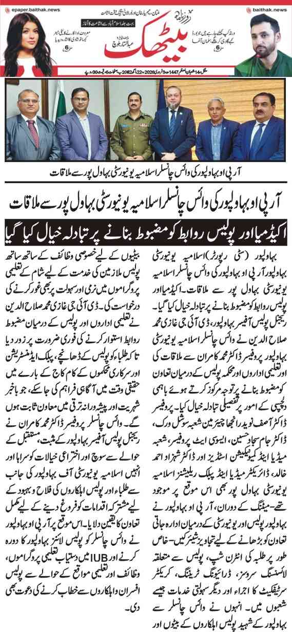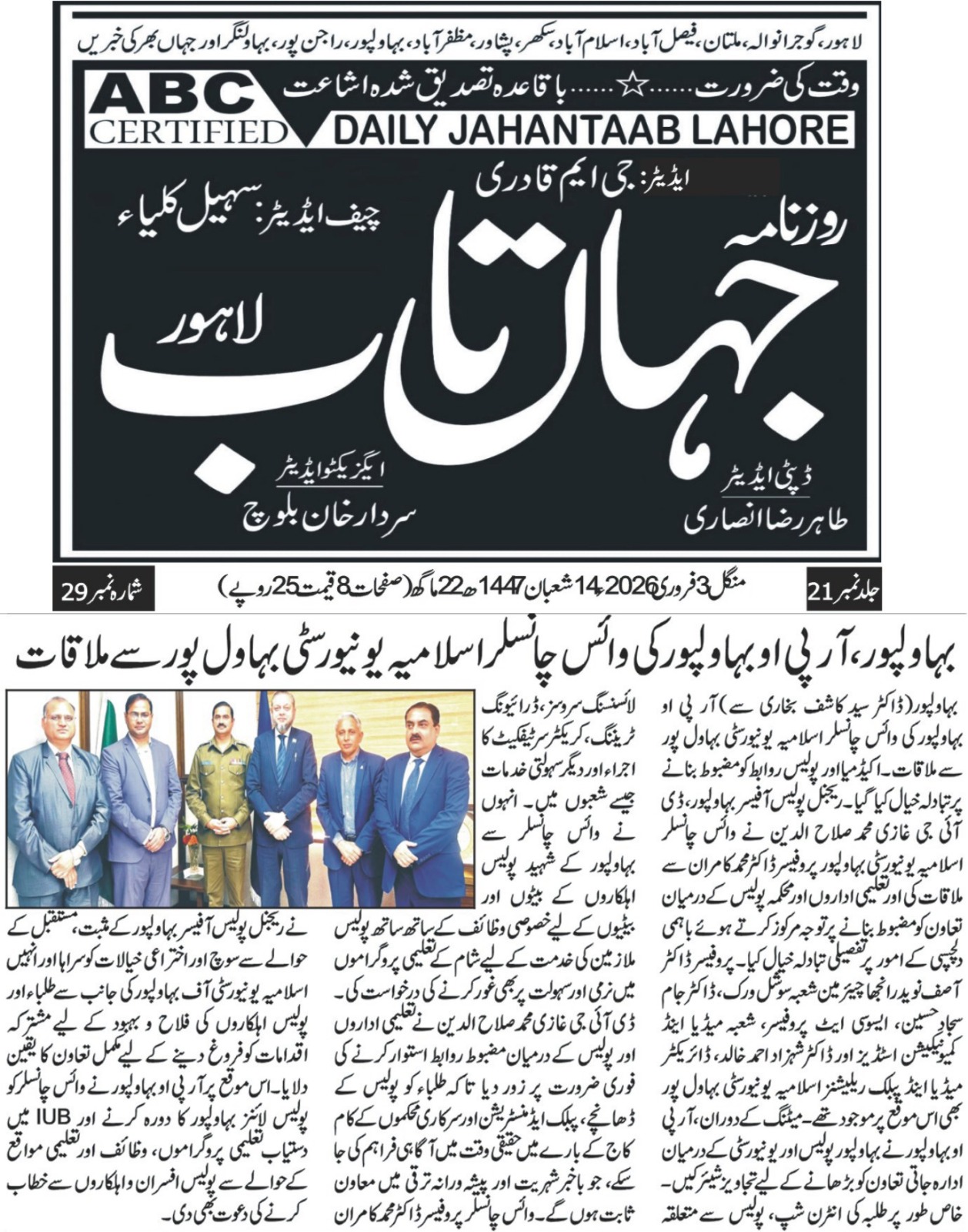 Corps Commander Bahawalpur visits the Islamia University of Bahawalpur | National Seminar on Food Security | IUB and Sichuan Agriculture University’s Project included in the CPEC | IUB announces Scholarahips for the Children of Martyrs of Bahawalpur Police
