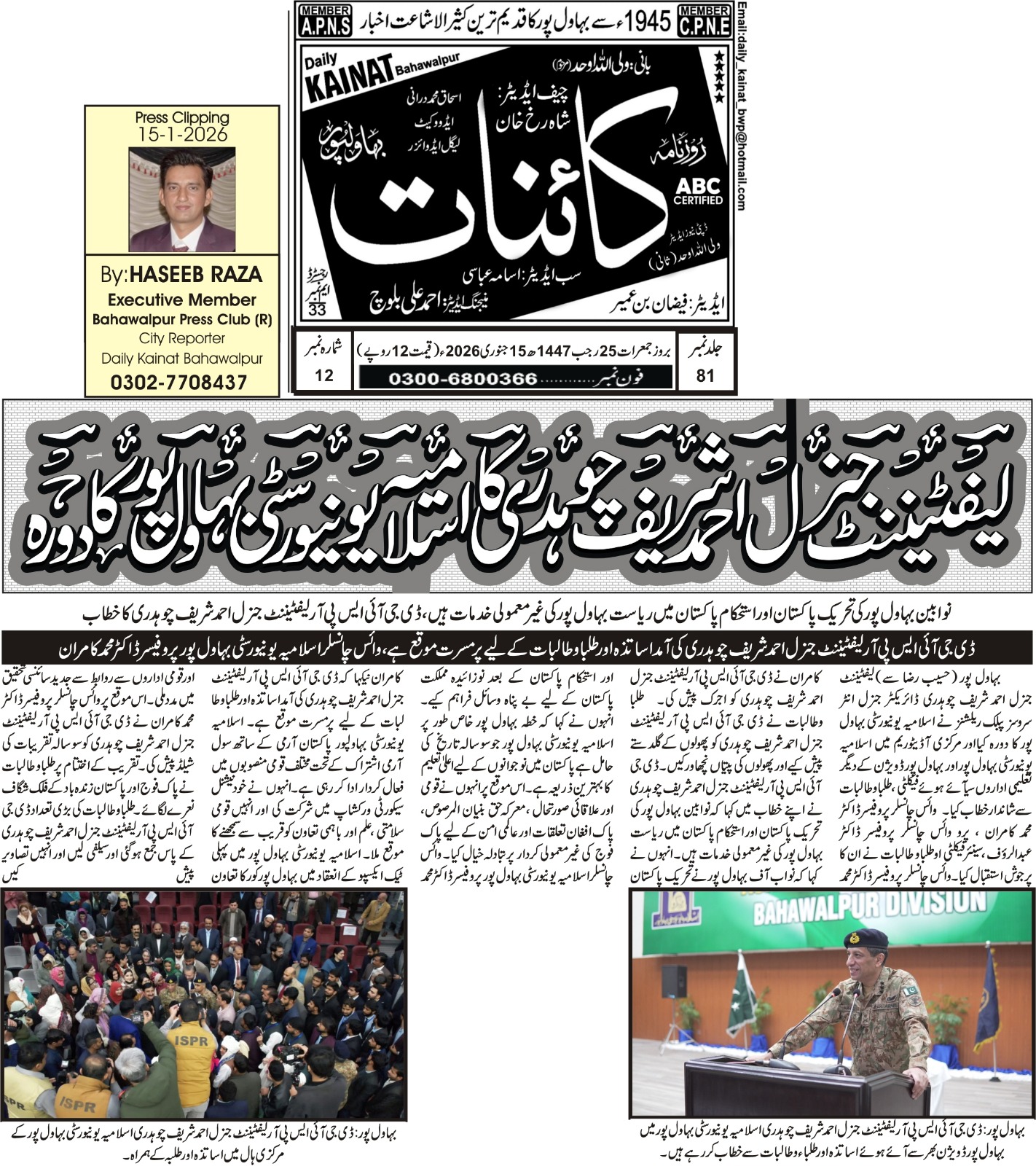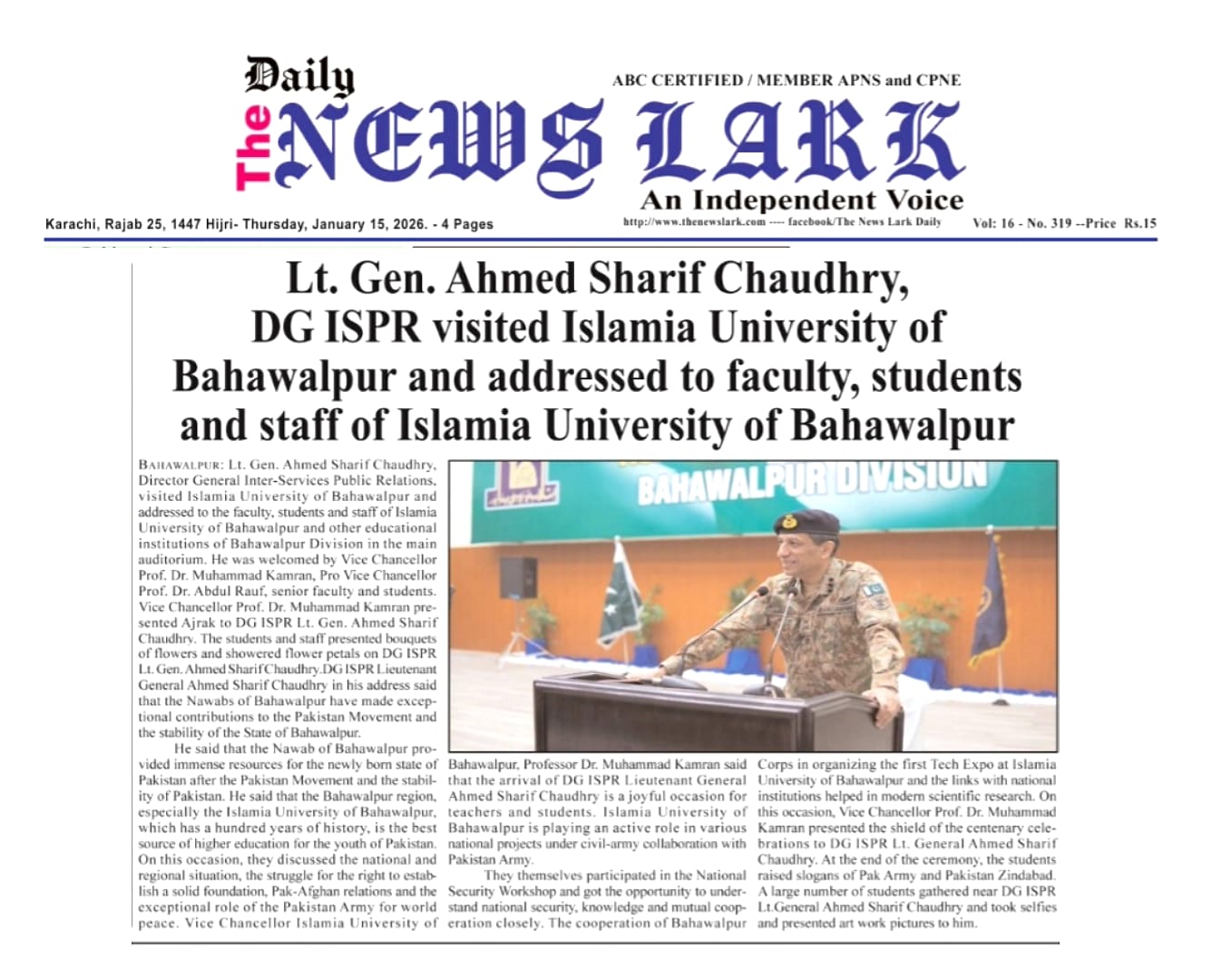 News Cuttings 15 January 2026