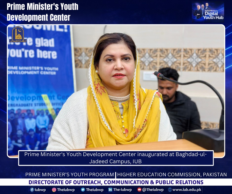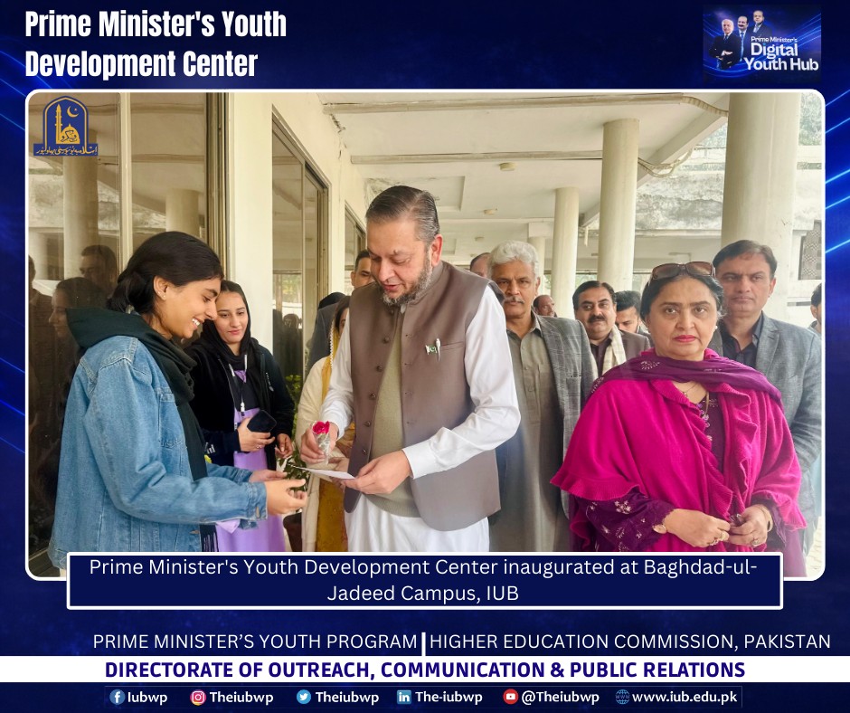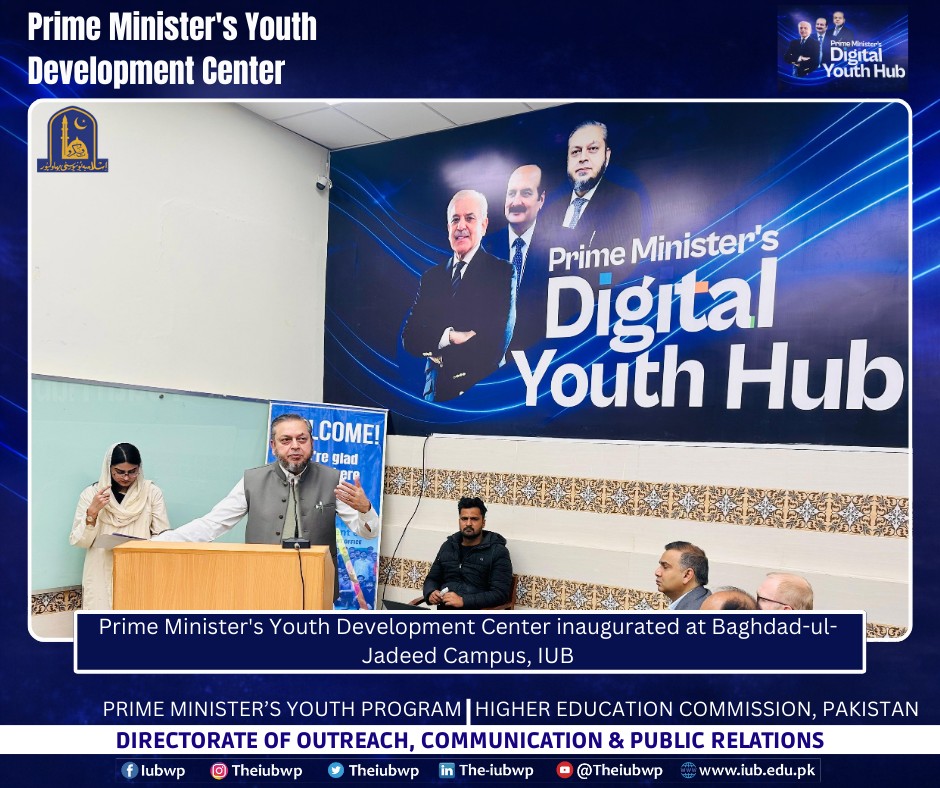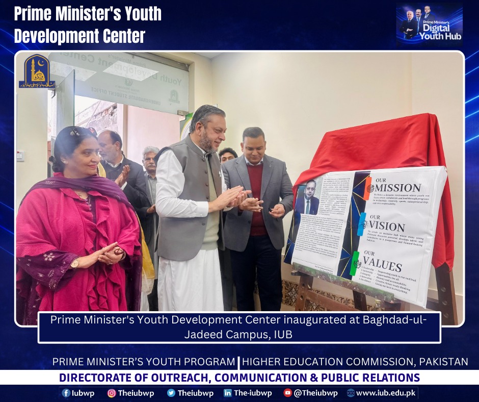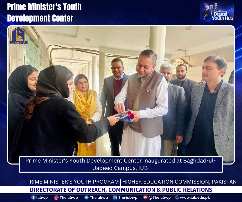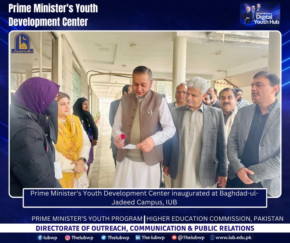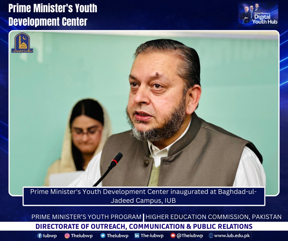 02 January 2026: Vice Chancellor Prof. Dr. Muhammad Kamran officially inaugurated the Prime Minister’s Youth Development Centre (PMYDC) today at the Baghdad-ul-Jadeed Campus.