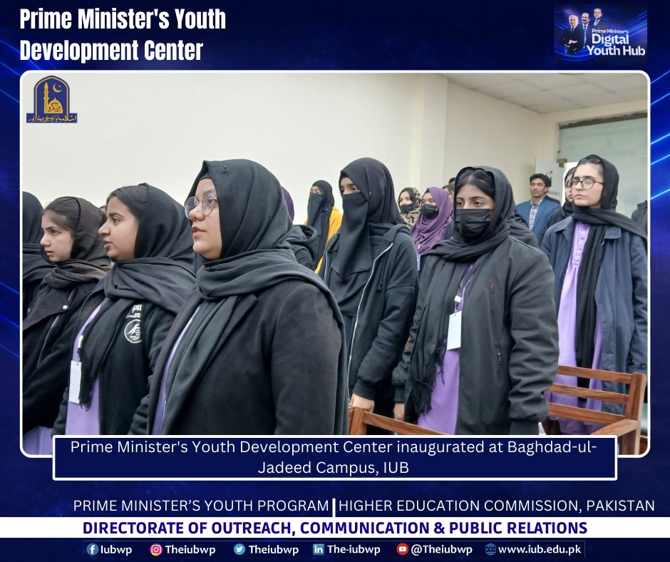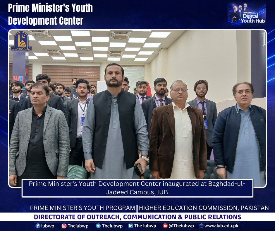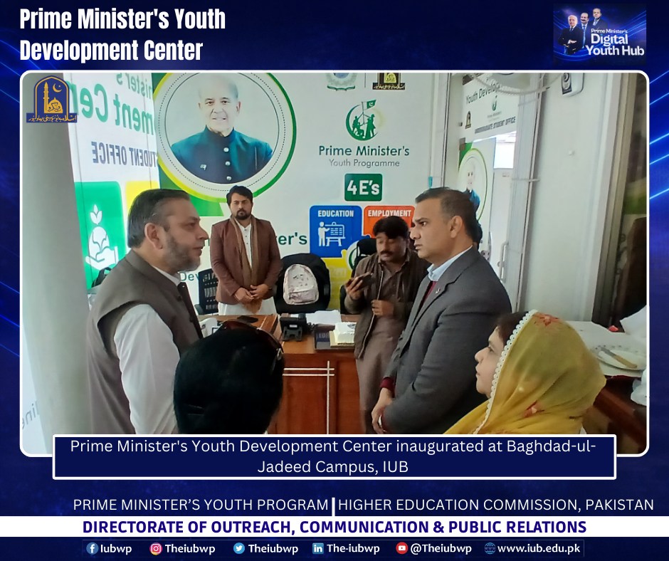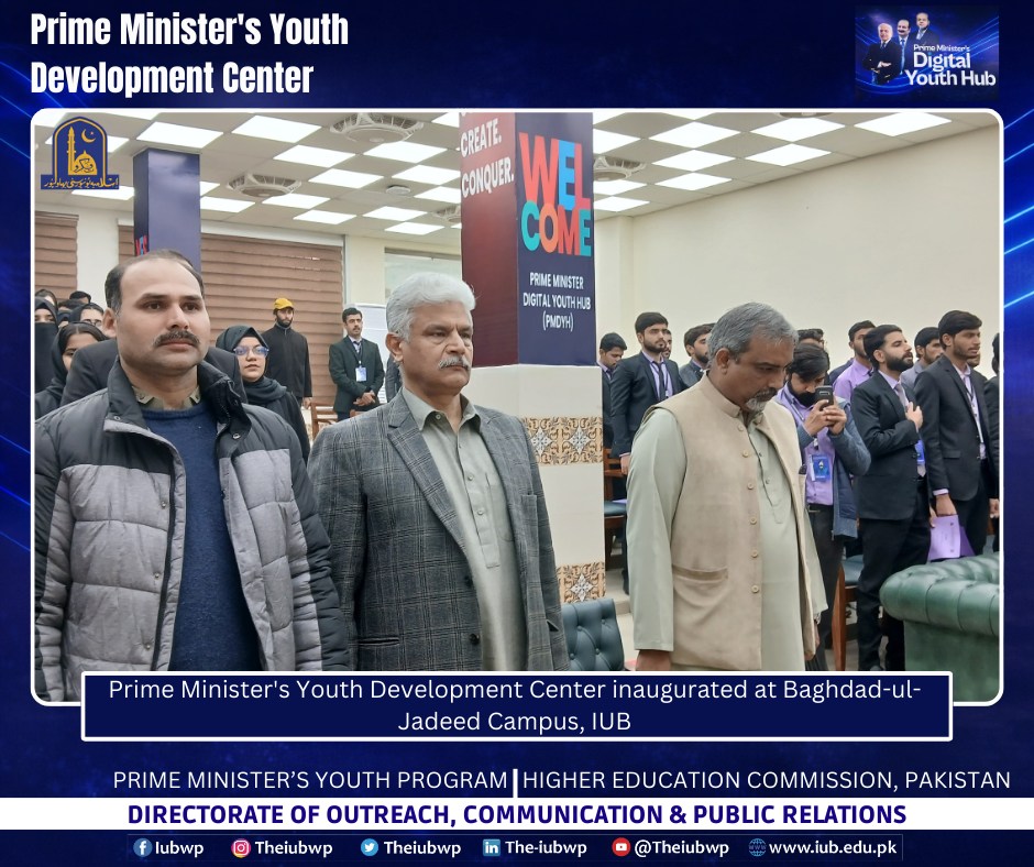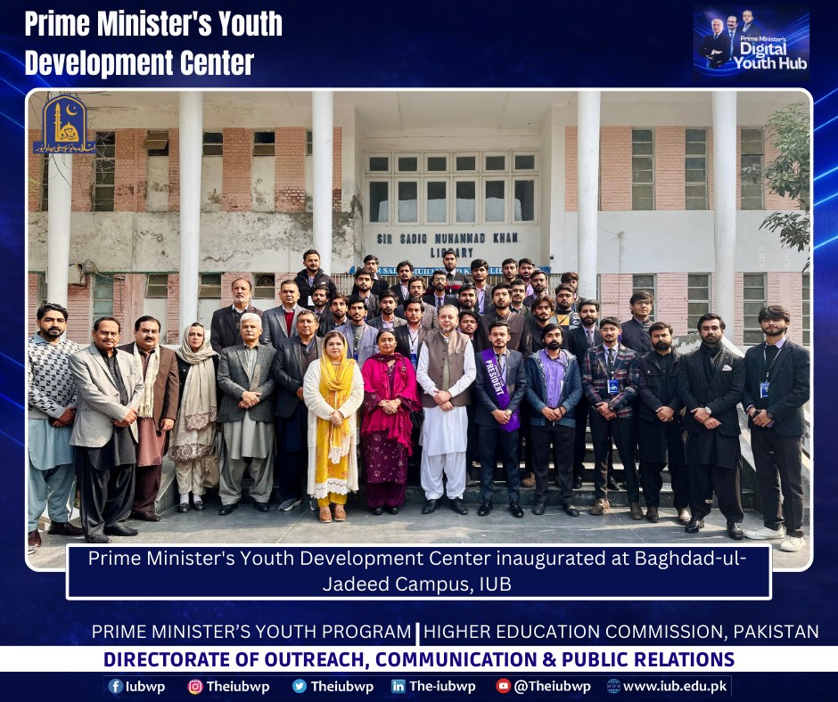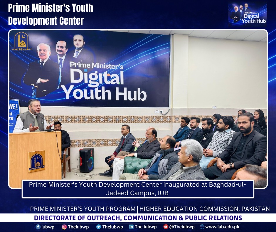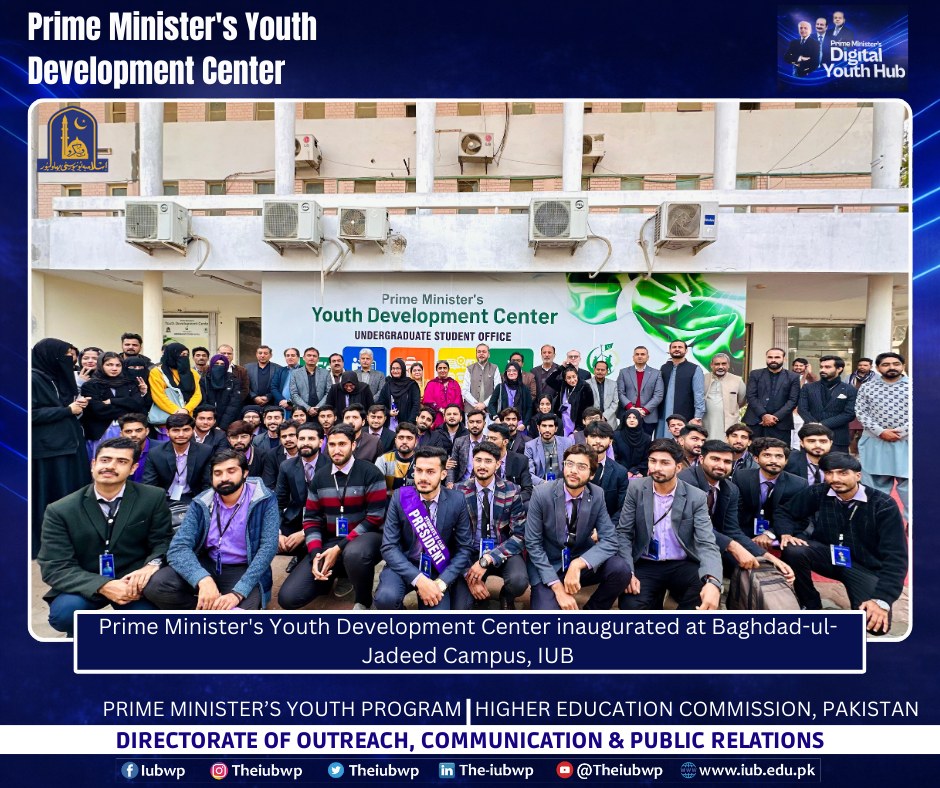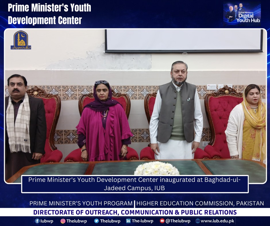 02 January 2026: Vice Chancellor Prof. Dr. Muhammad Kamran officially inaugurated the Prime Minister’s Youth Development Centre (PMYDC) today at the Baghdad-ul-Jadeed Campus.