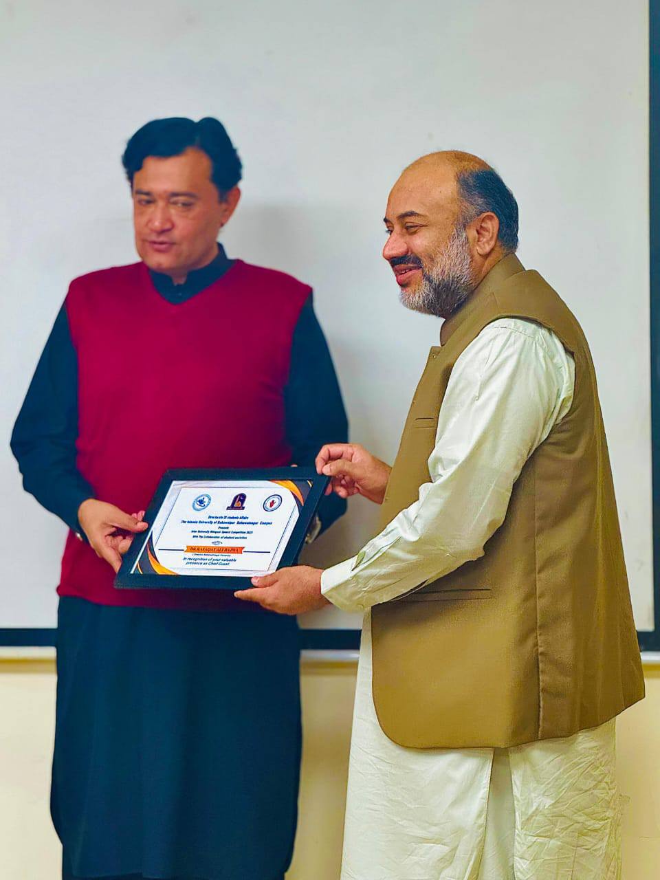 A speech competition was organized on the theme "عورت کو ہی میسر نہیں صرف انسان ہونا" and Youth Empowerment under the awning of the Student Societies at IUB Bahawalnagar Campus. The event, which was organized under the patronage of Director Campus Dr. Rafaqat Ali and supervised by Deputy DSA Aurangzeb Wattoo, was specially attended by MNA Mian Abdul Ghaffar Wattoo.