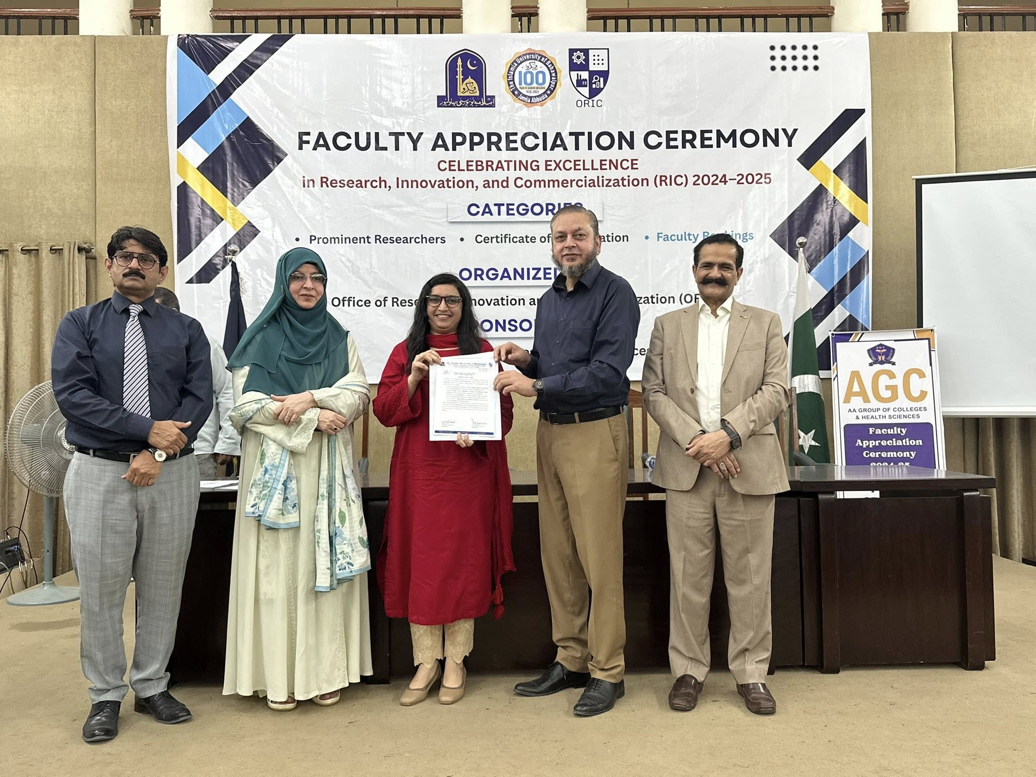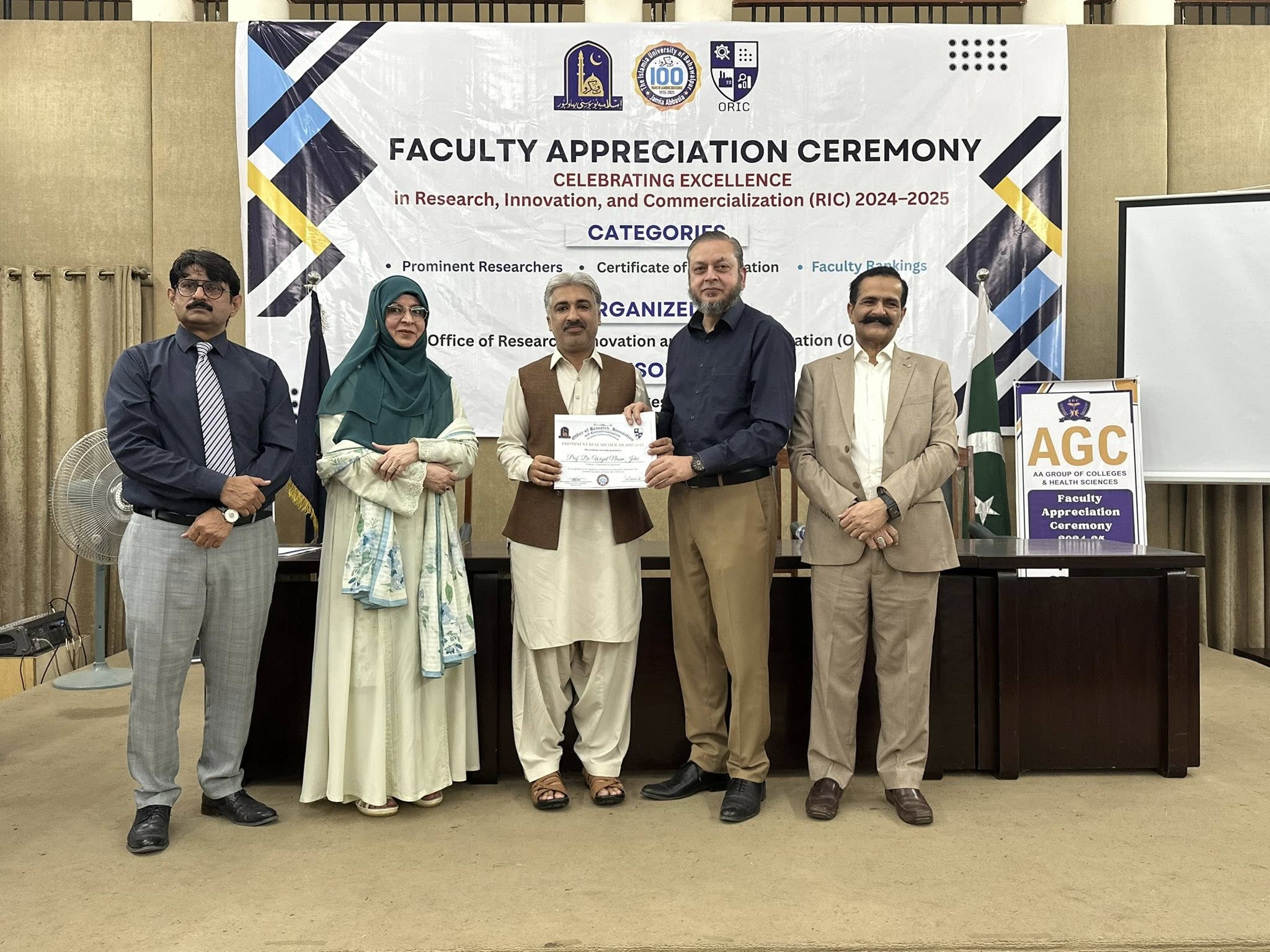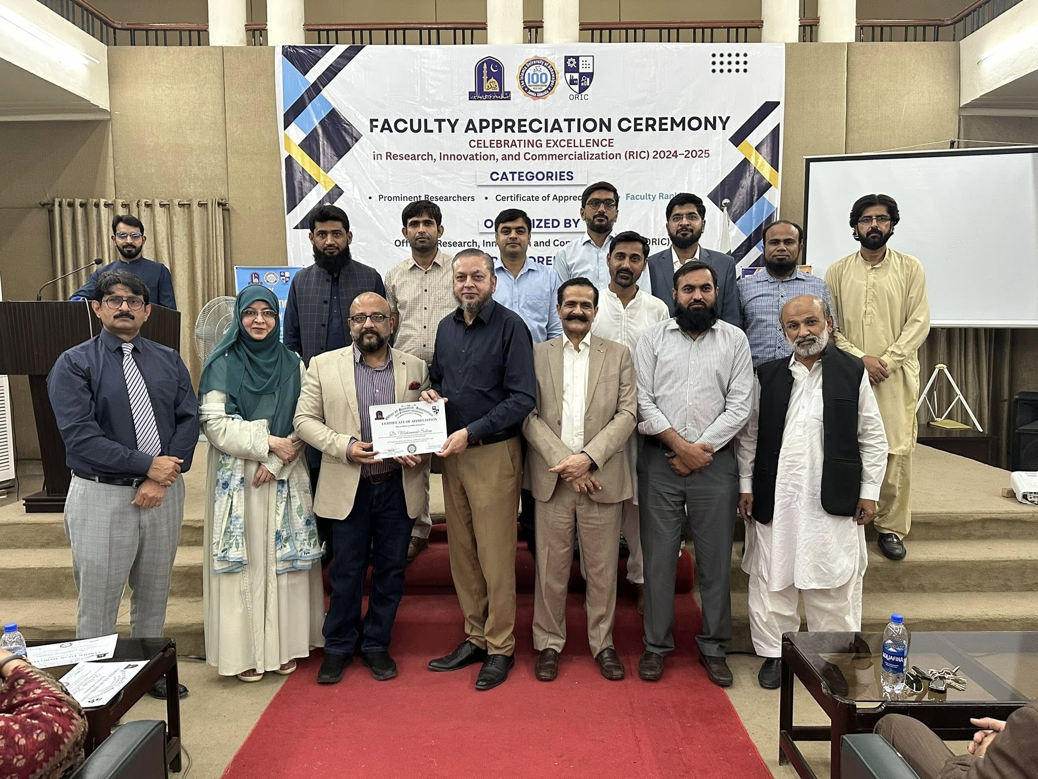 09 Oct 2025: The Office of Research, Innovation and Commercialization (ORIC), The Islamia University of Bahawalpur, organized its First Faculty Appreciation Ceremony 2025 to honor the distinguished faculty members who have demonstrated exceptional performance in the domains of Research, Innovation, and Commercialization in line with the HEC-defined ORIC KPIs for the fiscal year 2024–25.