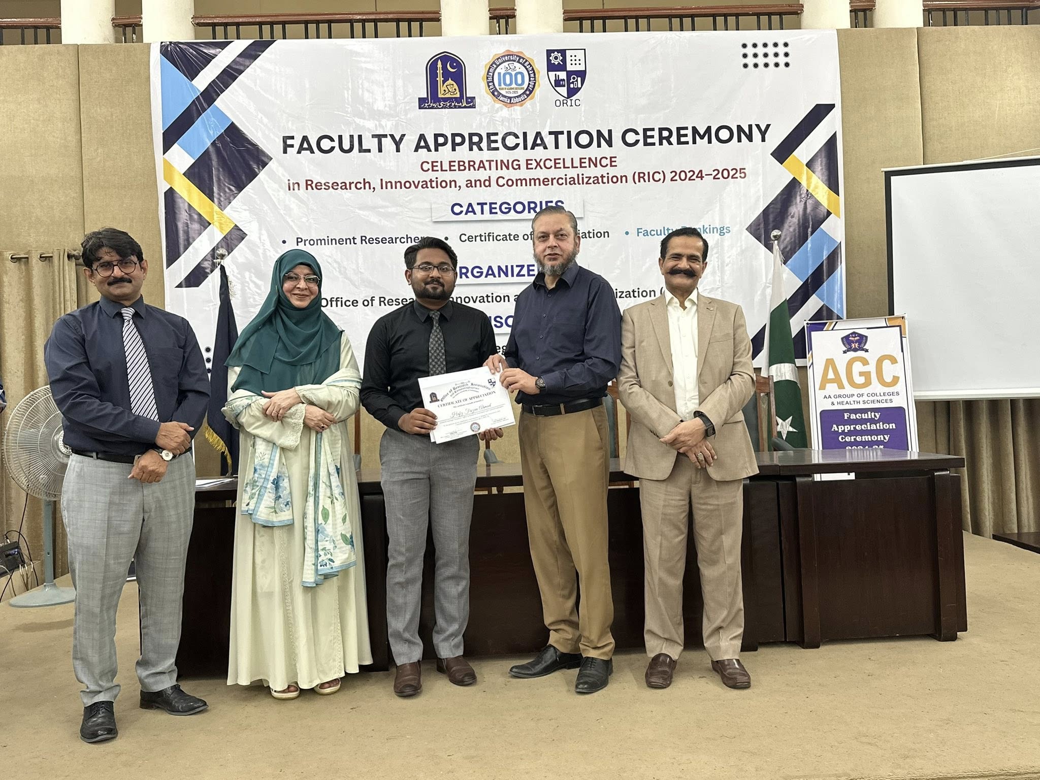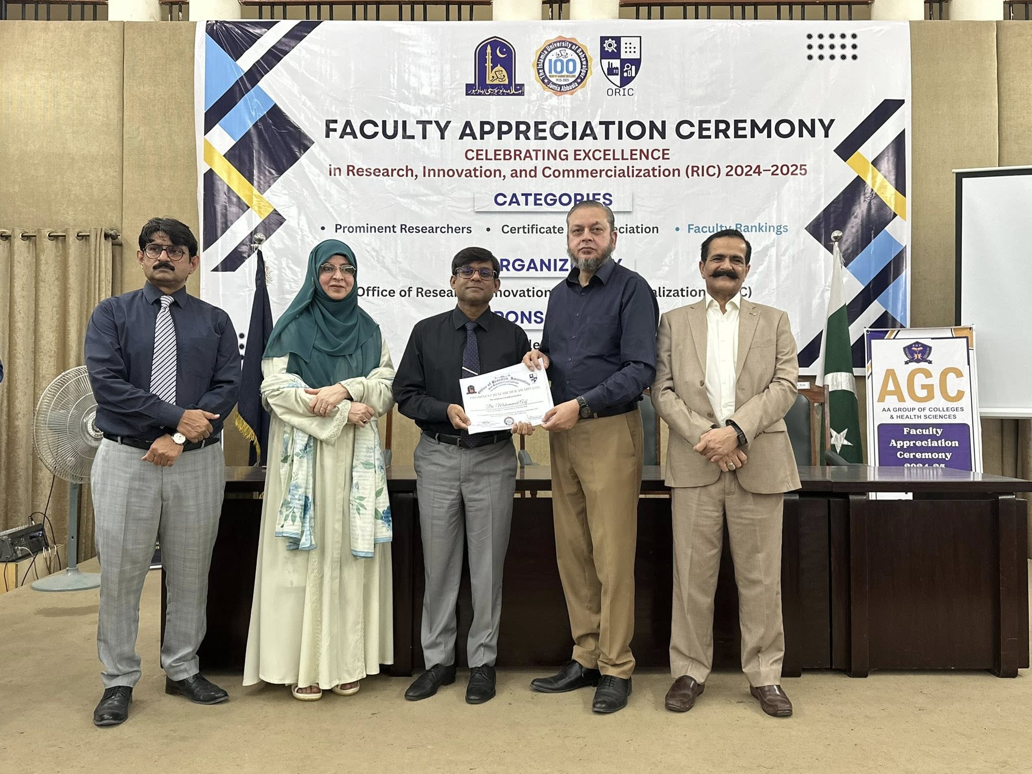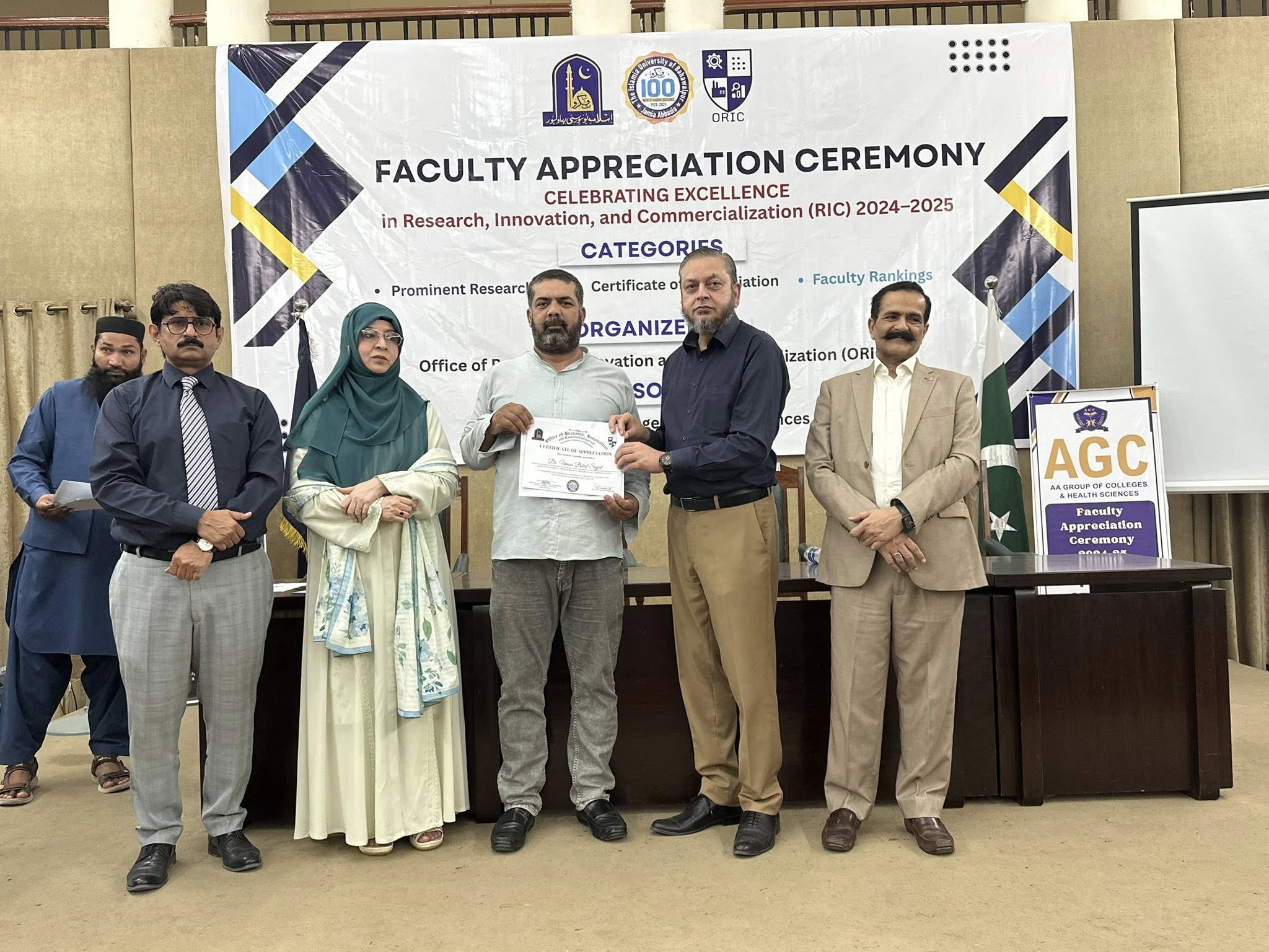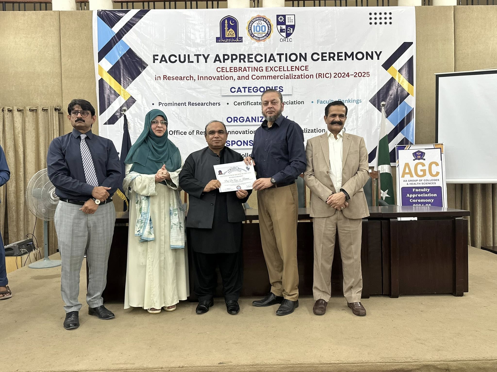 09 Oct 2025: The Office of Research, Innovation and Commercialization (ORIC), The Islamia University of Bahawalpur, organized its First Faculty Appreciation Ceremony 2025 to honor the distinguished faculty members who have demonstrated exceptional performance in the domains of Research, Innovation, and Commercialization in line with the HEC-defined ORIC KPIs for the fiscal year 2024–25.