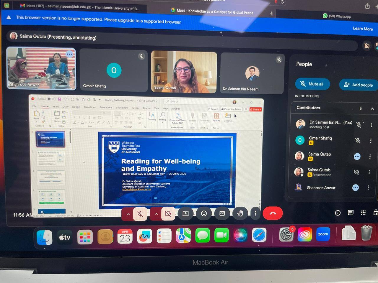 The Department of Information Management, in collaboration with the SDGs Collaboration Center at The Islamia University of Bahawalpur (IUB), organized a Webinar titled “Knowledge as a Catalyst for Global Peace,” followed by an Awareness Walk to mark World Book and Copyright Day.
