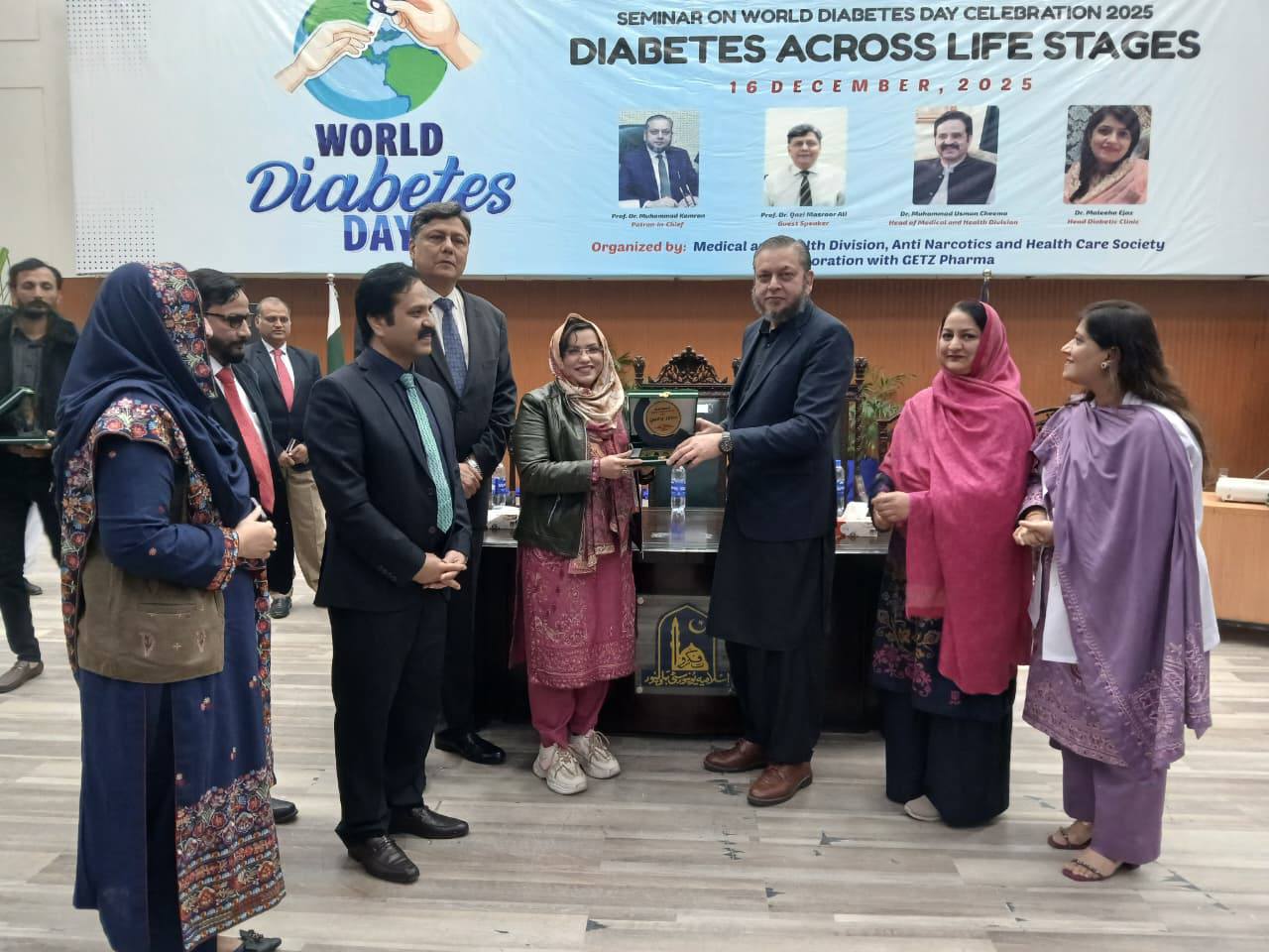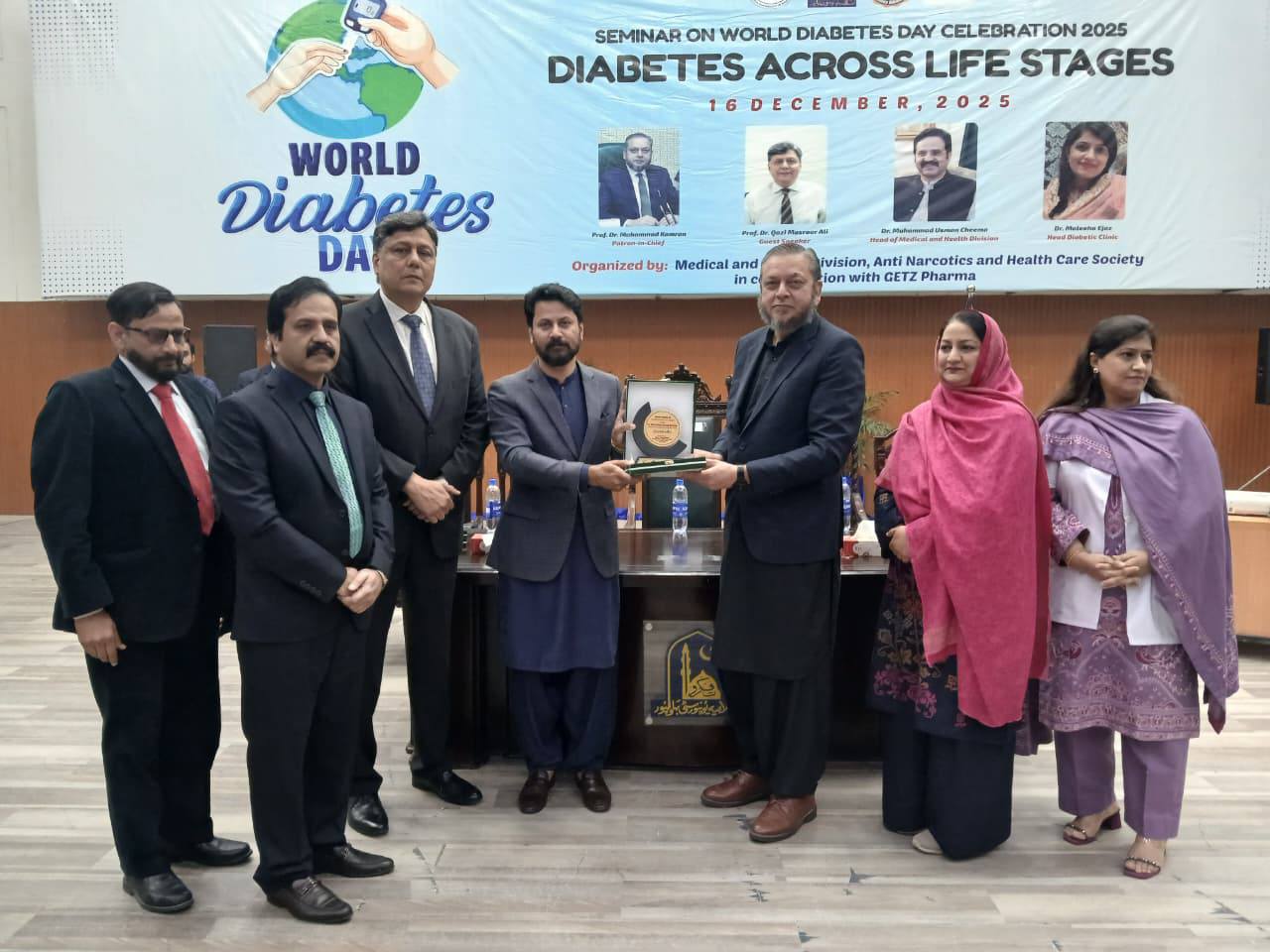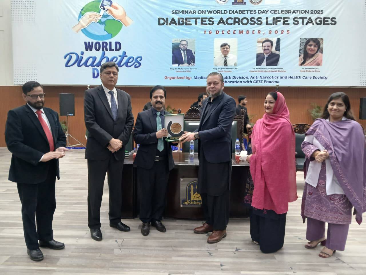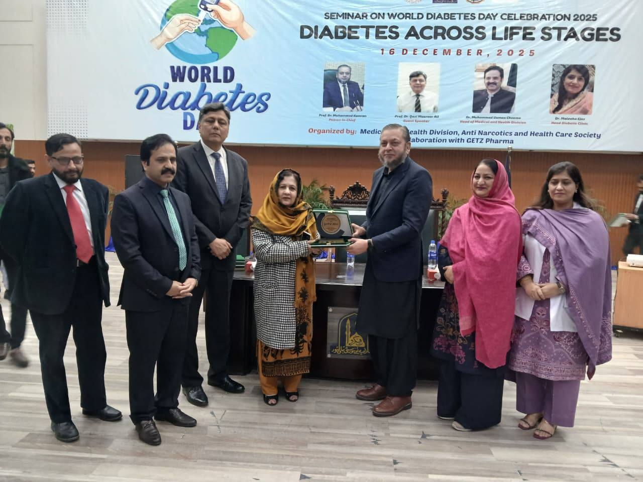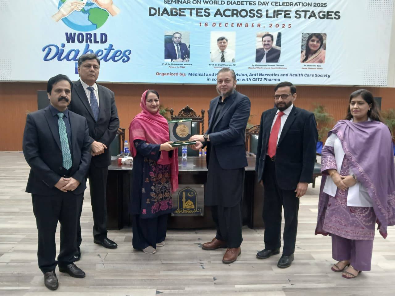 16 December 2025: World diabetes day was celebrated today in Khawaja fareed auditorium by Medical and Health Division,IUB in collaboration with IUB anti narcotics and health care society and Getz pharma .Professor Dr Qazi masroor ali was the guest speaker.
